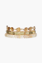Unearth the unique beauty of gemstones with this naked wrap bracelet featuring rows of green garnet, quartz and gold plated hematine. A bold silhouette to add to your bracelet stack.