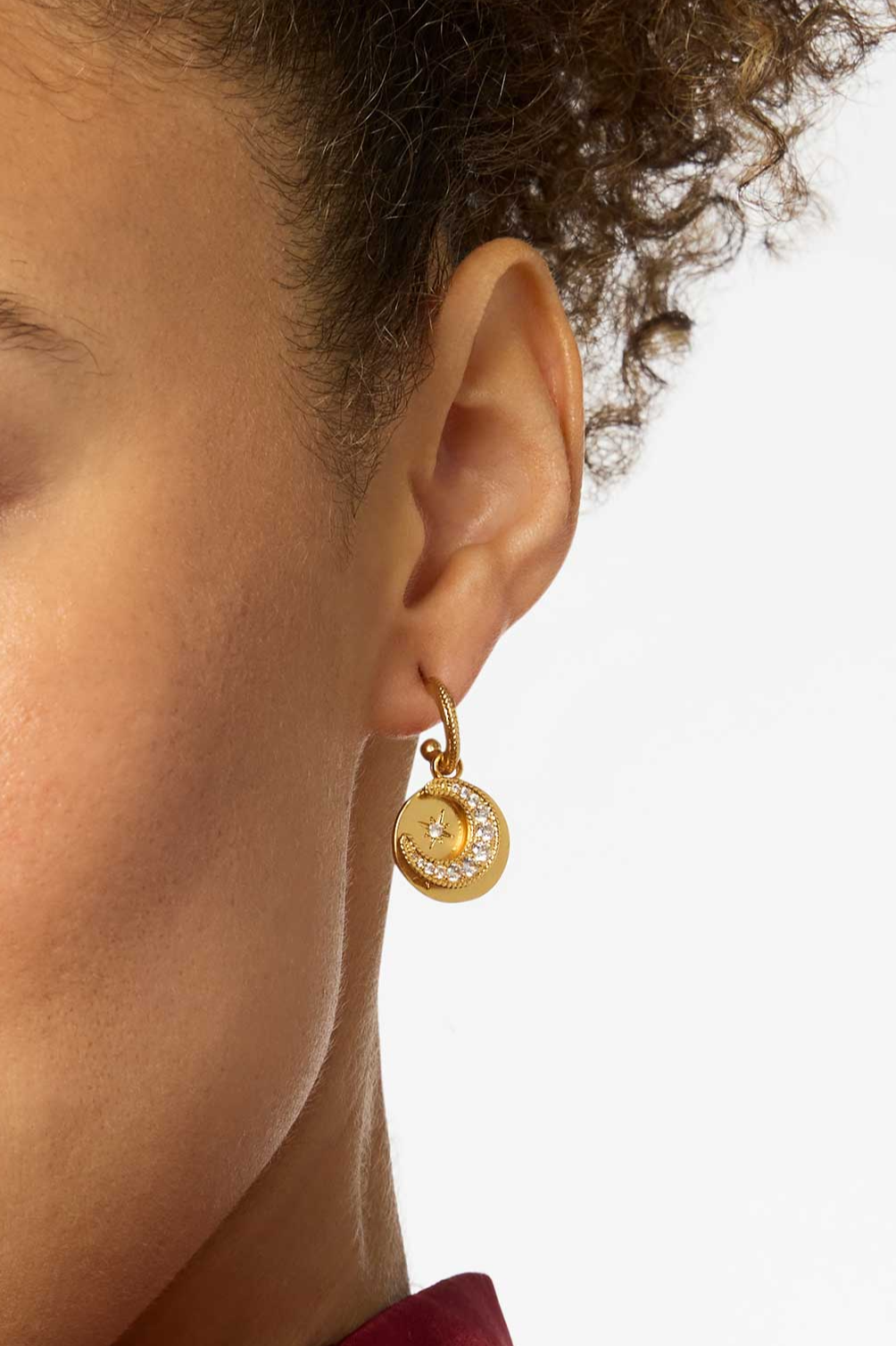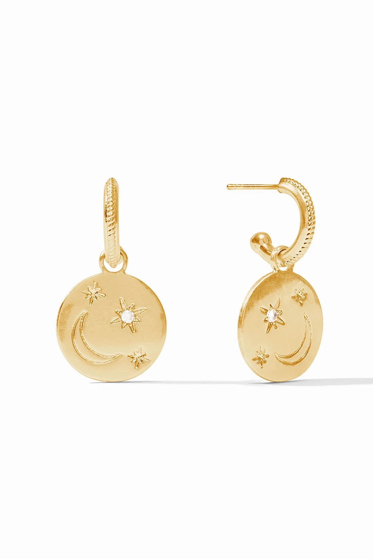 Luna 4-in-1 Charm Earring is four earrings in 1. Wear all together for a layered charm look, or wear charms on their own, or hoop all by itself