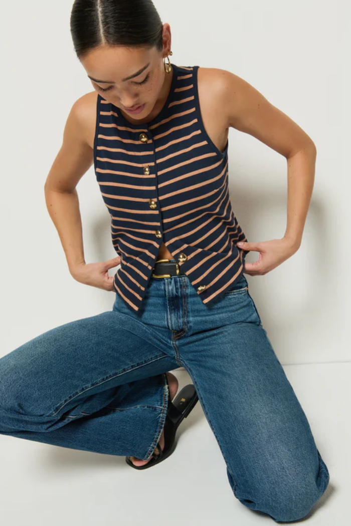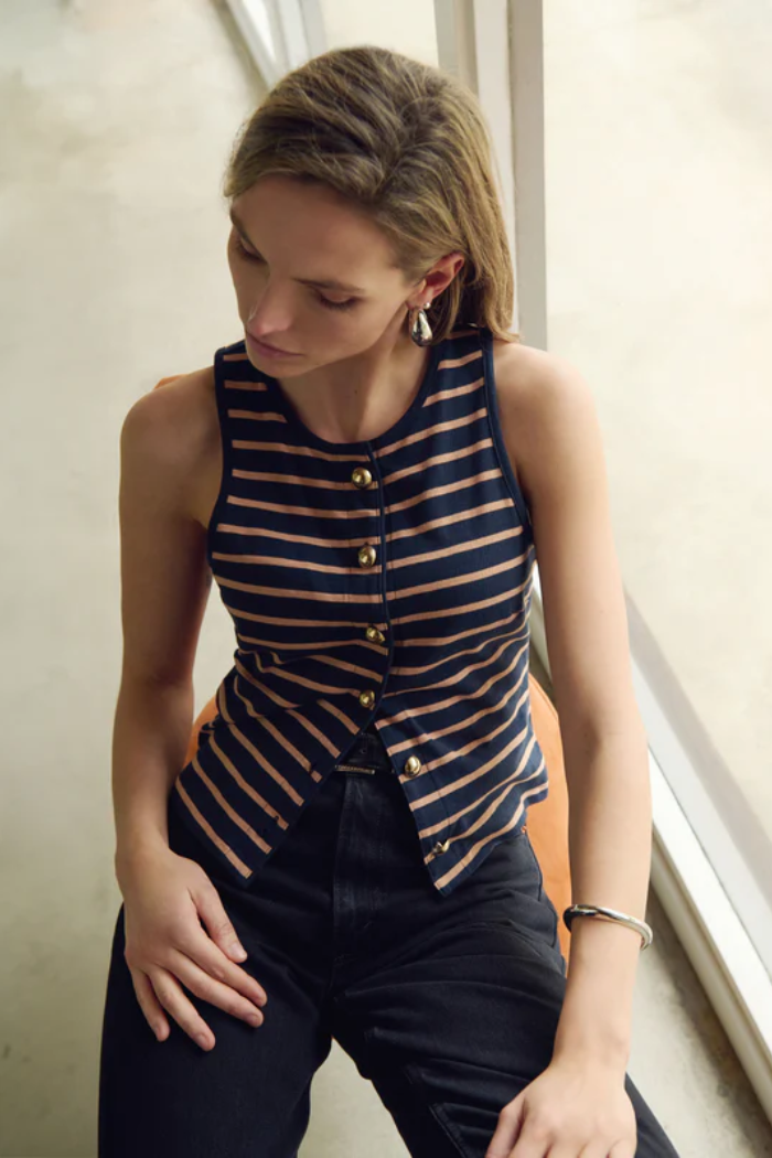 Abbie Sleeveless - Latte Stripe