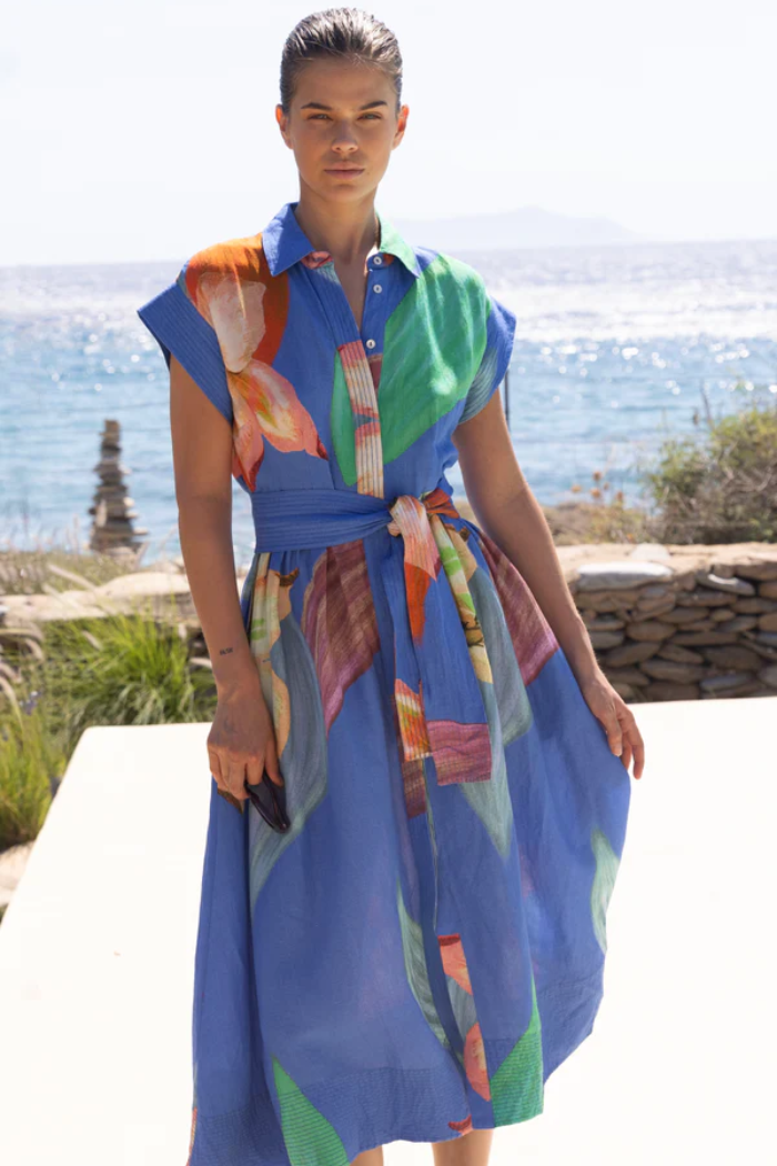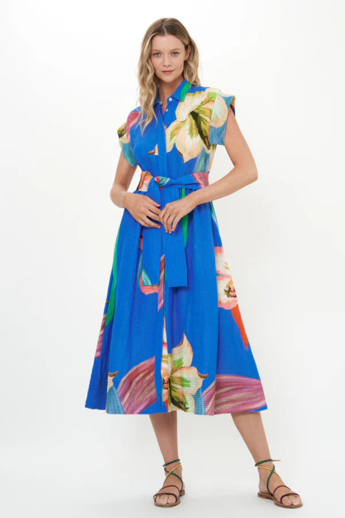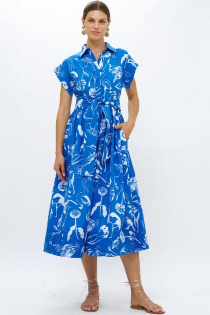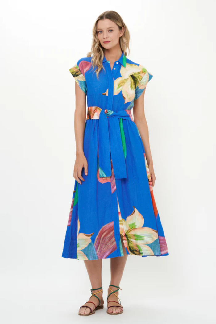 Belted Shirt Dress - Hibiscus Blue