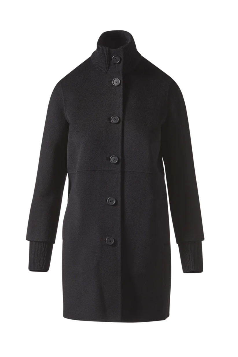Button Front Knit Trim Coat