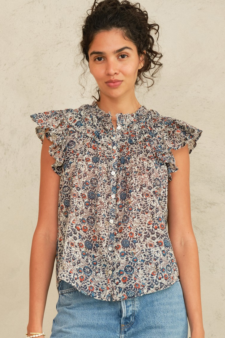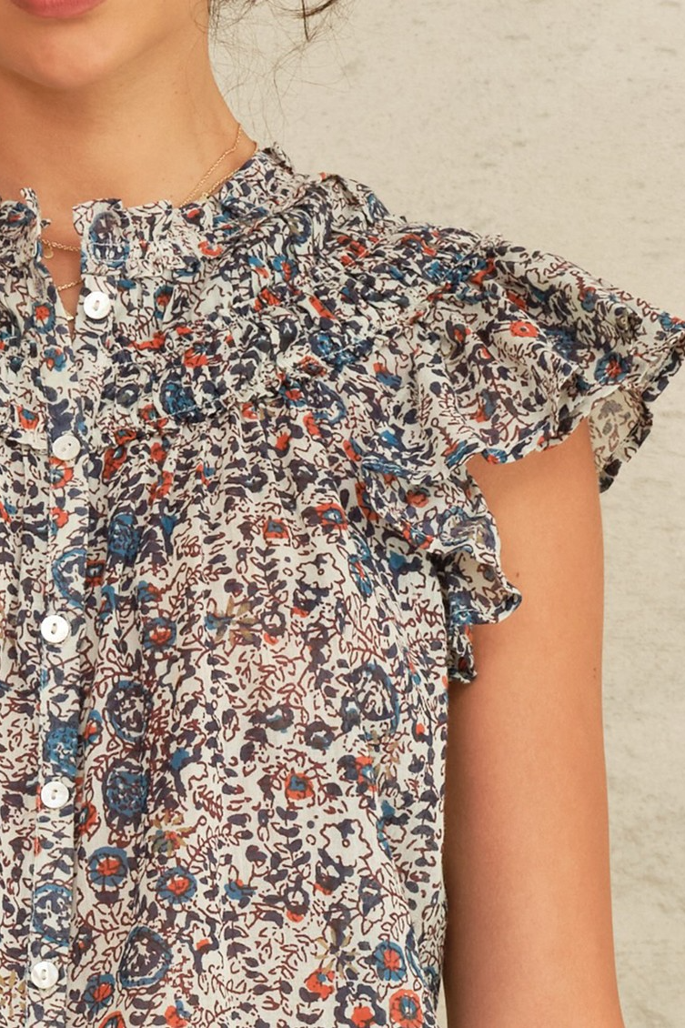 Cass Print Frill Top