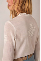 An airy embroidered blouse with delicate ruffle trim, textured fabric and a feminine high neckline. The Bilbao - Gabriela Blouse pairs a relaxed silhouette with long sleeves for effortless everyday wear. Maison Hotel designs this piece with detailed front embroidery and subtle pintuck styling for a bohemian-meets-polished look. Wear it tucked into high-waist pants or layered under a blazer for vacation or casual weekends.