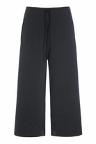 Fleece pants with flare legs in mid-calf length. The pants have pockets in the sides and ties in the front.