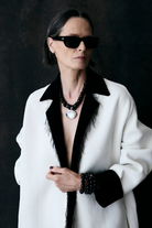 The Oona Bracelet is composed of faceted onyx beads on stretch cord. A striking statement piece to wear on its own.