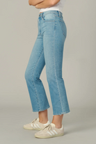 A high rise and slim fit through the waist, hip and thigh with a modest bootcut that hits above the ankle.