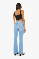 Twist of fate. This cult-favorite flare jean has a mid rise with a 31-inch inseam and a clean hem. Cut from stretch denim, Blessing In Disguise is a mid blue with subtle whiskering and fading at the knees.