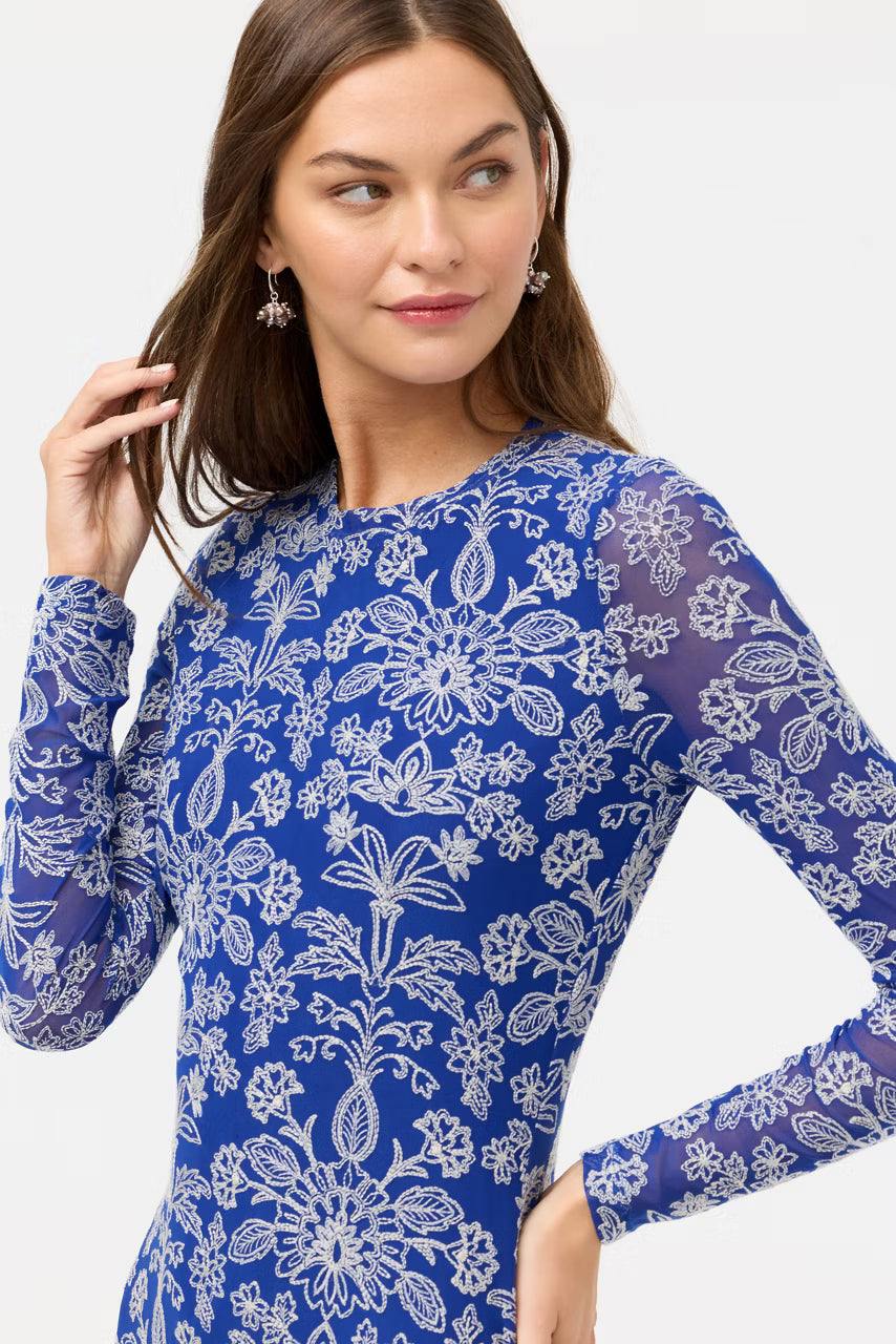 Beautifully crafted from a breathable mesh fabric, the Shelly Midi Mesh Dress is embellished with an ornate contrasting pattern. Designed with a crew neckline and long sleeves, this A- line dress offers a lined bodice at the front and back. Pair with heels and delicate glittering jewelry pieces for an elegant dinner date.