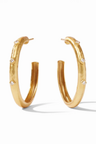 Diamond-shaped brilliant cut CZ gemstones adorn these lightly hammered hoops.