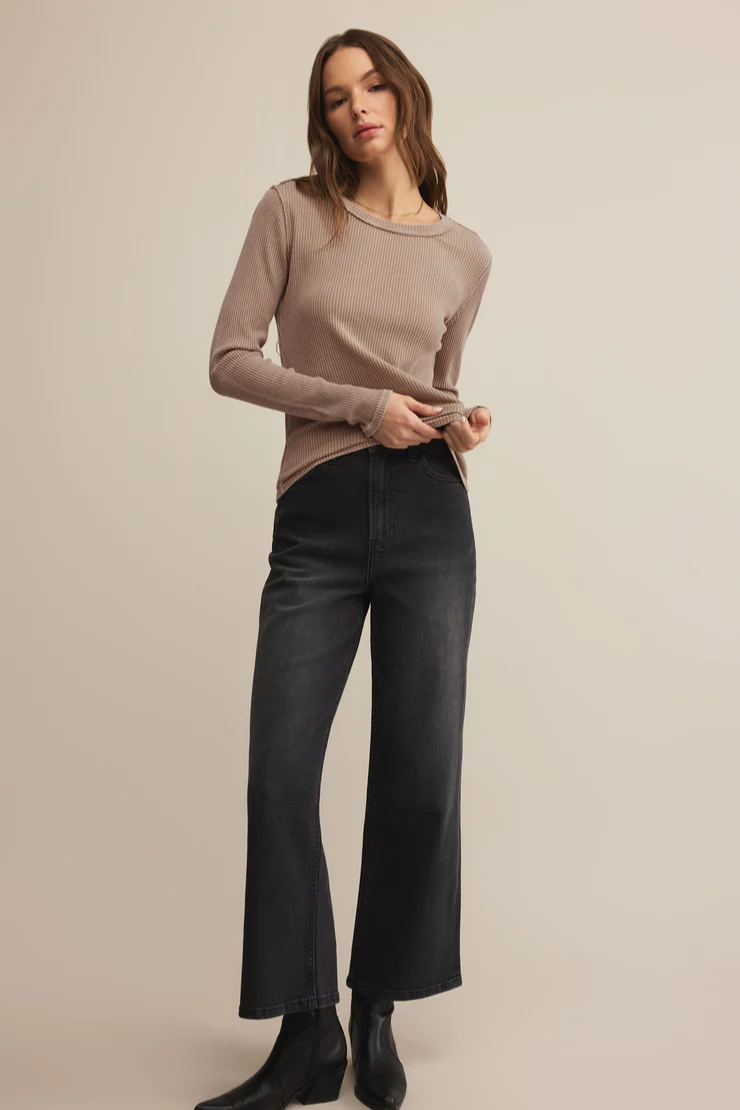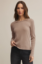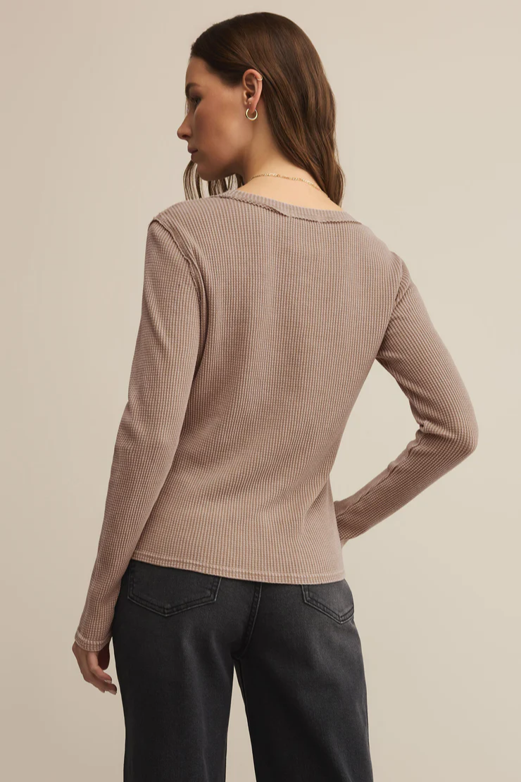 An easy essential with a lived-in twist. This fitted long sleeve is made from soft waffle thermal with raw-edge shoulder seams for that perfectly worn, forever-loved feel.
