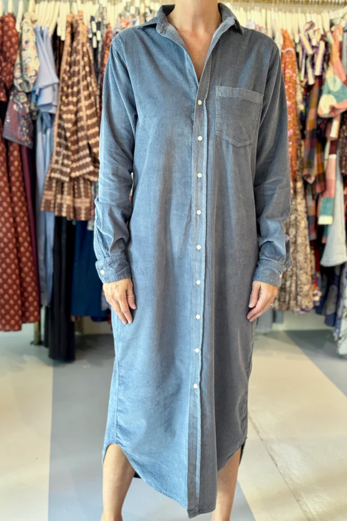 Rory Maxi Shirtdress, Slate Corduroy