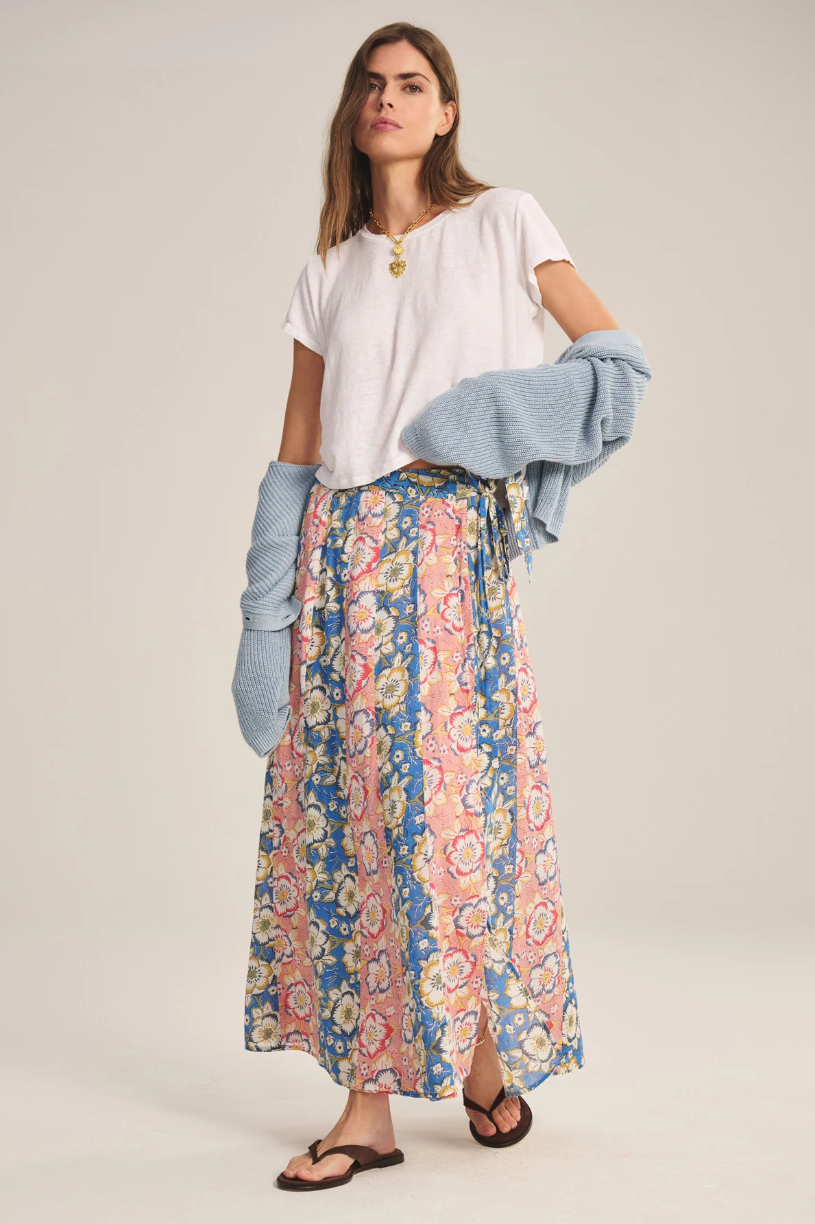 Crafted from printed cotton, this wrap skirt features a belted panel design that can be styled high or low on the waist for a customizable fit. Fully lined and flowing to a maxi length, it offers effortless movement and comfort. Perfect for dressing up or keeping it casual.