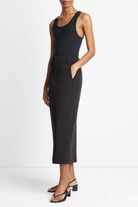 Cut with a straight silhouette, this midi-length stretch-cotton skirt is designed to sit lower on the waist and outfitted with trouser-inspired details for elegant simplicity.