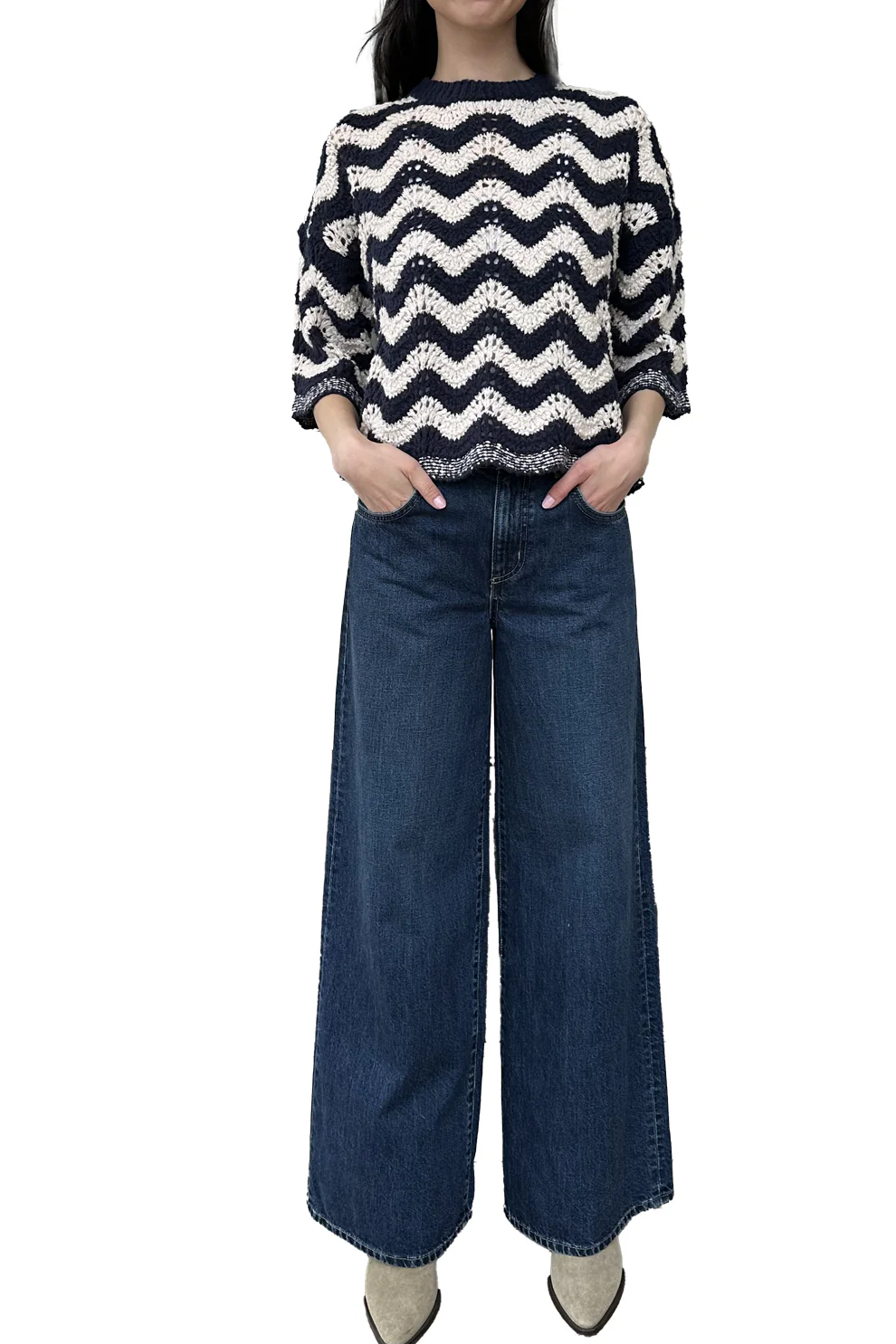 Zig Zag Stitch Crew with Scallop Edge
