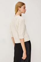 Timeless and romantic, the Clarissa celebrates elegant charm with its contrasting velvet bows. Made from a sumptuously soft cable knit, this relaxed cropped sweater features three-quarter puff sleeves and hidden snap closures at the front.