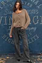 A modern staple with a feminine twist. This super cropped cardigan features rolled edge neckline, front button closures, clean edges, and subtle side slits for added movement.