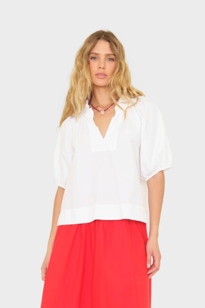 Patty Popover Short Sleeve Henley - White
