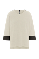Soft fleece blouse with an elegant twist. Designed with contrast color details on the sleeves for a refined touch. Style it with matching trousers model 2119 for a complete look.