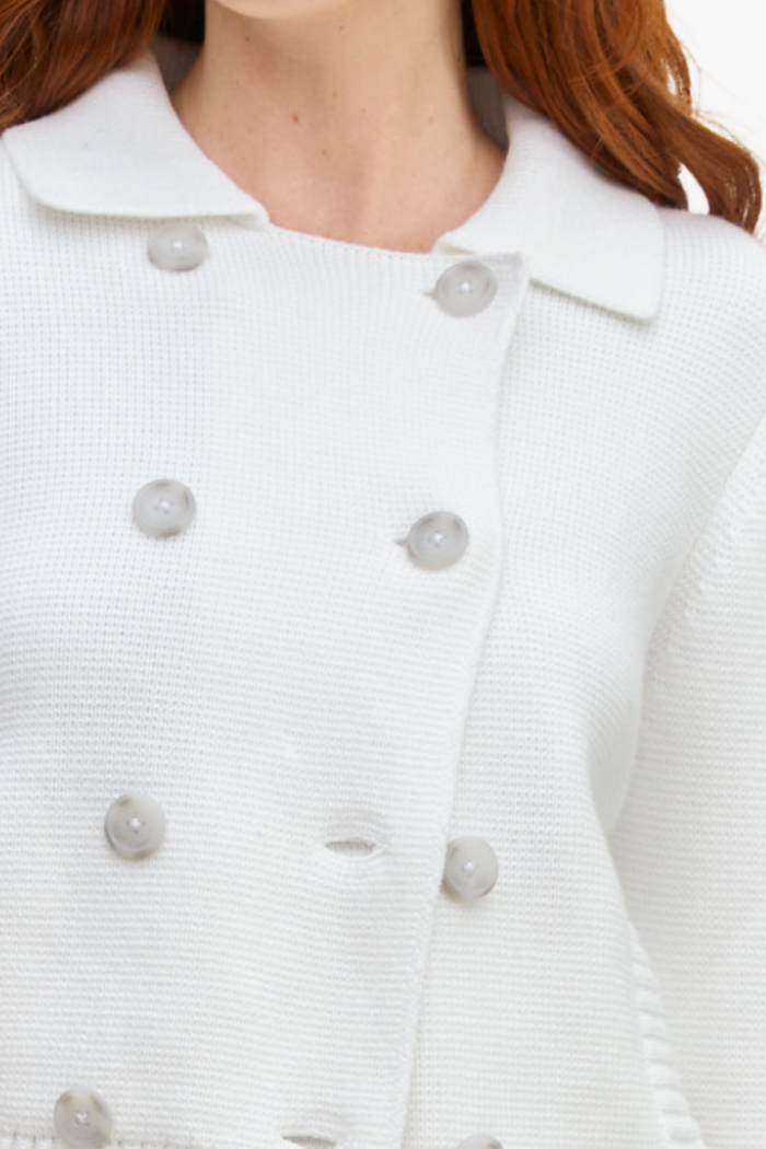 The Dylan Double Knit Jacket is a timeless layer with a tailored yet comfortable feel. Crafted from soft cotton in a cozy double-knit Milano stitch, this double-breasted knit jacket features a classic collar and functional front pockets for everyday ease. Polished enough for work and relaxed enough for weekends, it’s the perfect piece to elevate denim, trousers, or soft separates all season long.