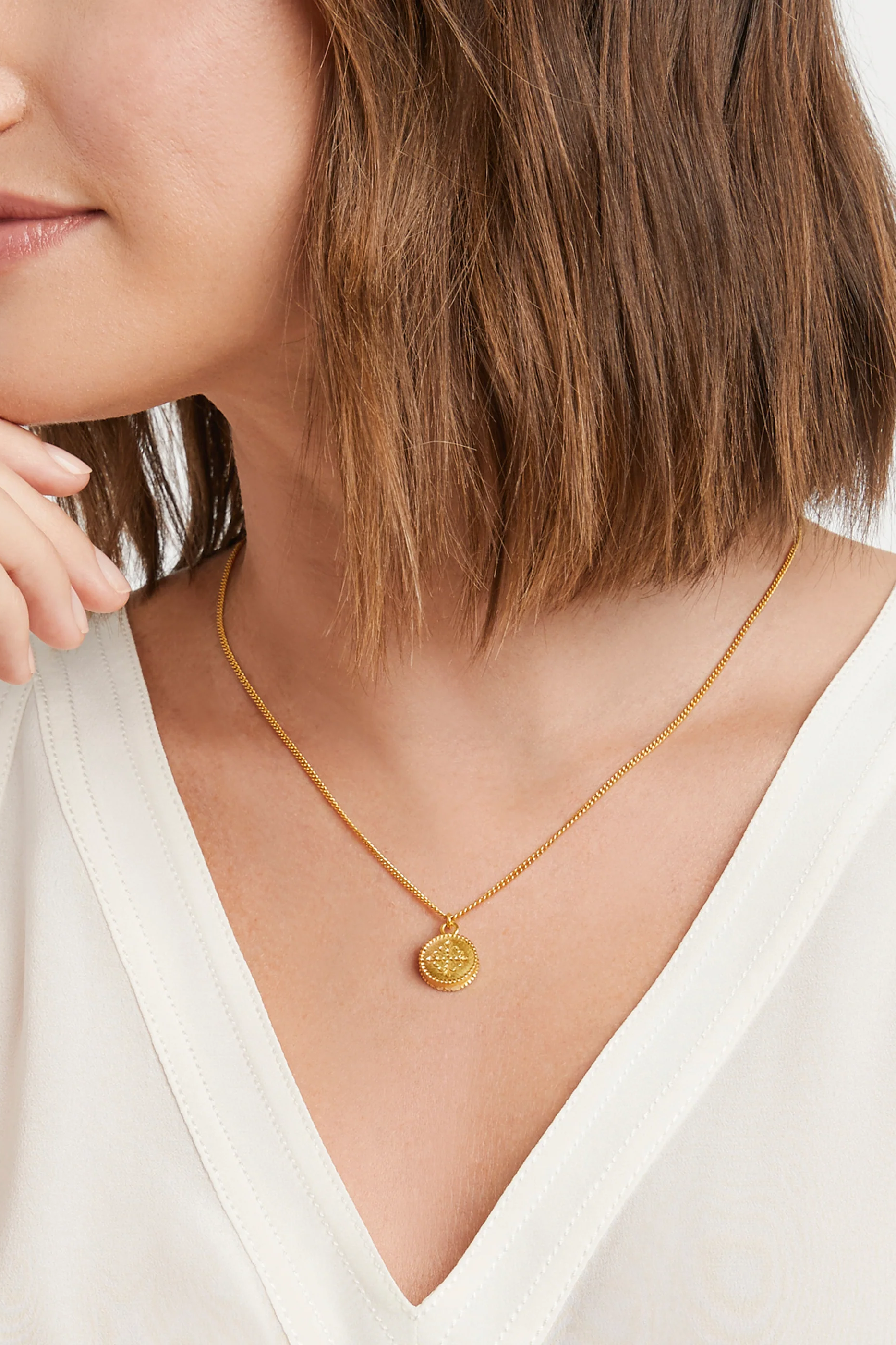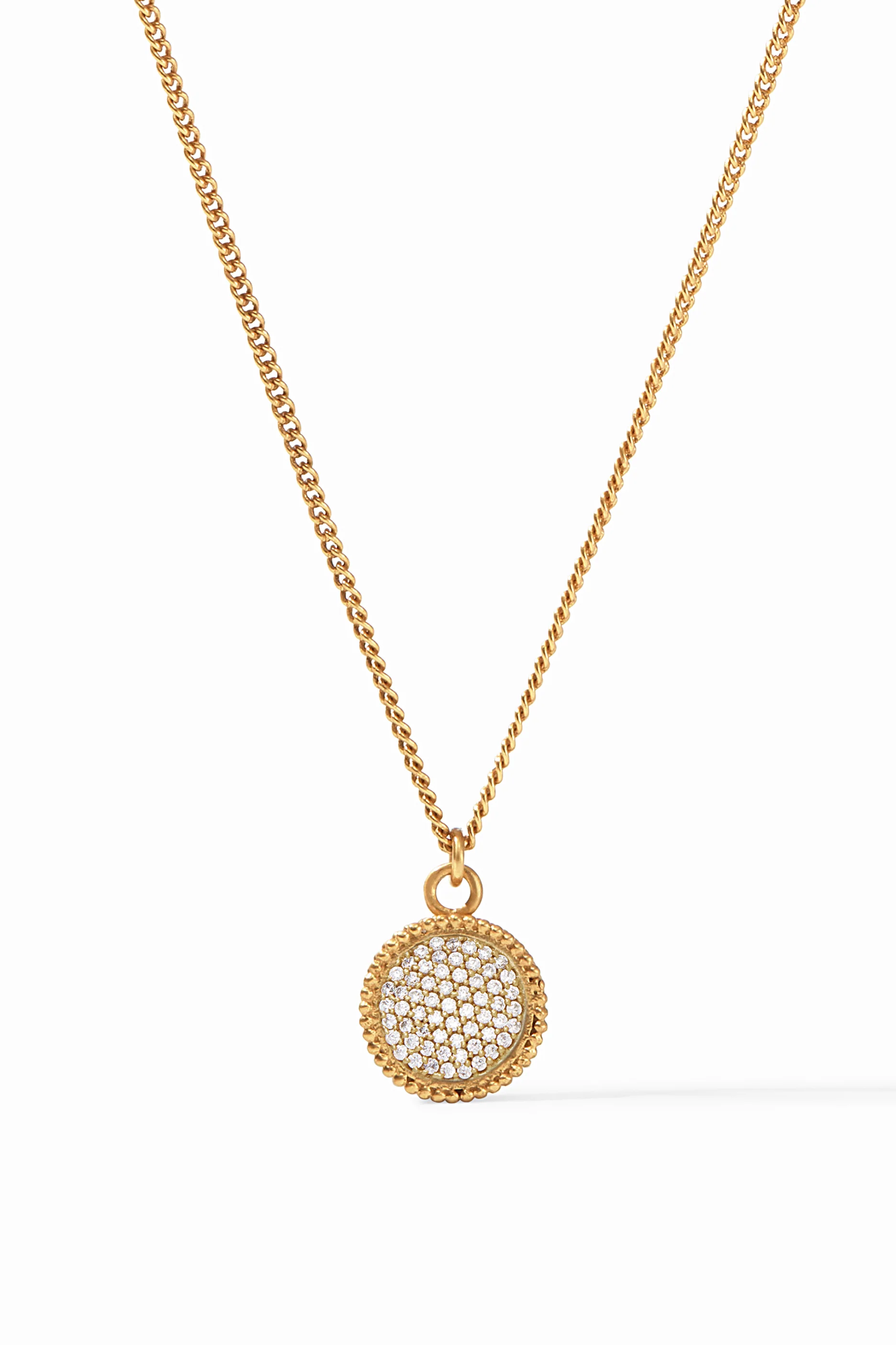 One necklace, two ways to wear it—one side features a glittering gemstone, while the reverse side features a fleur-de-lis intaglio.