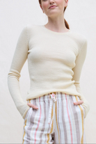 Margaret O'Leary's signature 100% cotton waffle crew in this season's hot color - butter.
