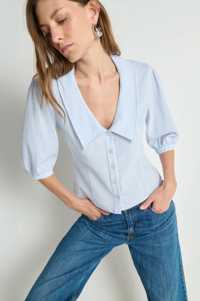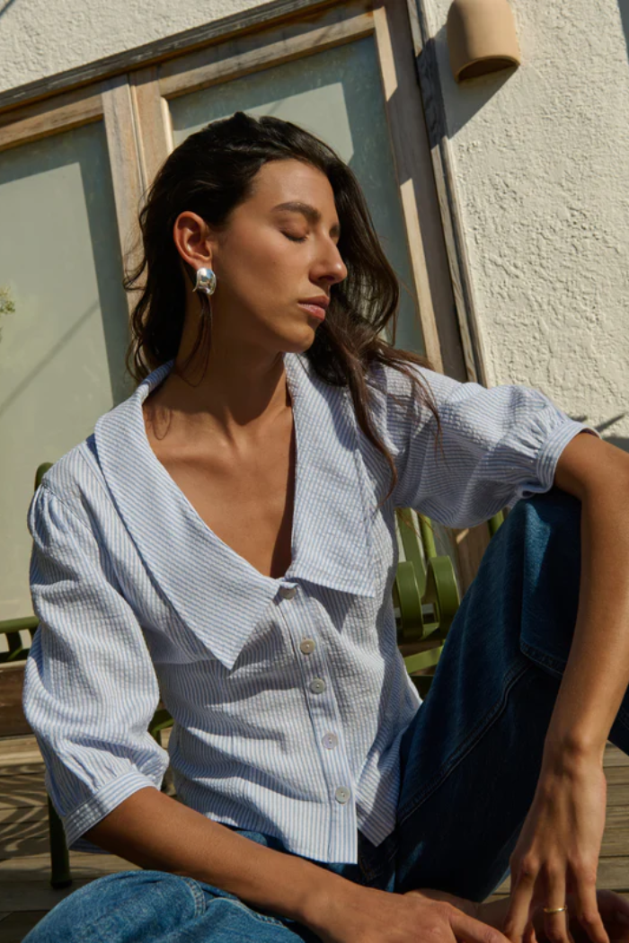 Quietly elevated, with just a touch of volume. Puff sleeves, shell buttons, and a soft collar make the Veronique Blouse polished, fresh, and versatile.
