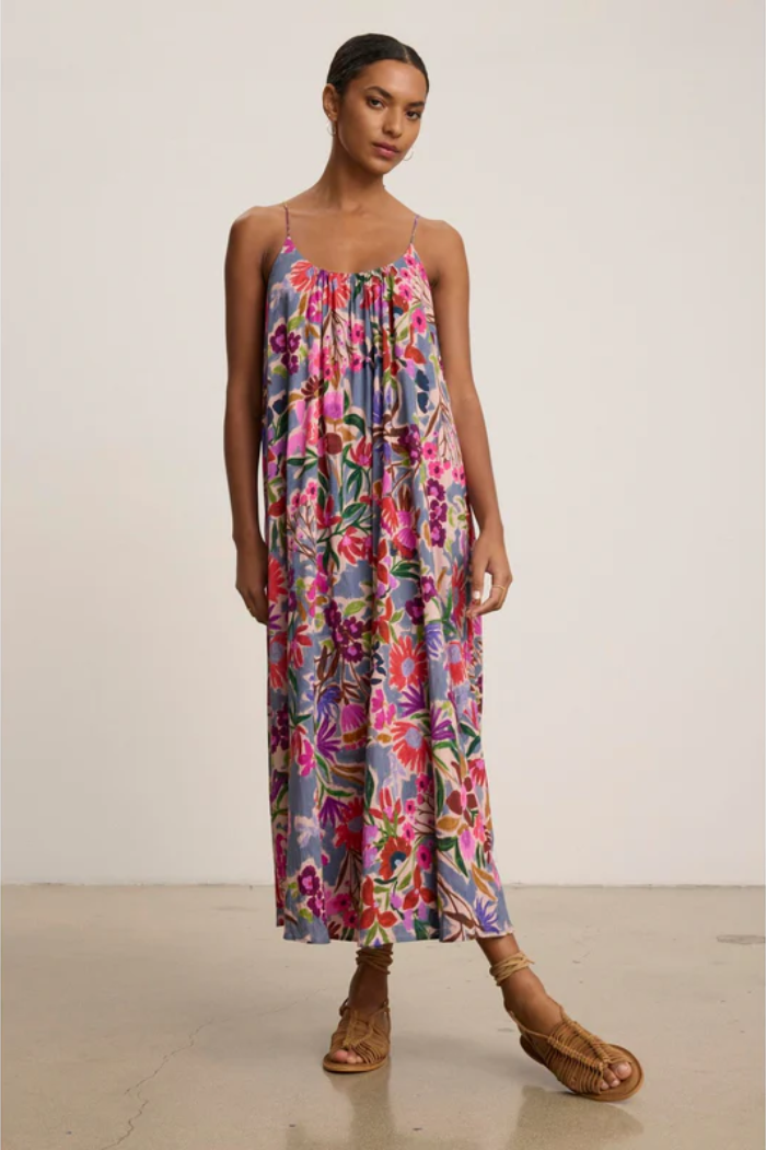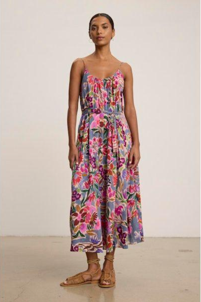Designed with a timeless maxi silhouette, this dress features a classic tank style and a detachable belt for versatile styling. Crafted from lightweight printed cotton voile and fully lined for added coverage, it offers an effortless blend of sophistication and elegance. A flowy staple that’s perfect for warm-weather days.
