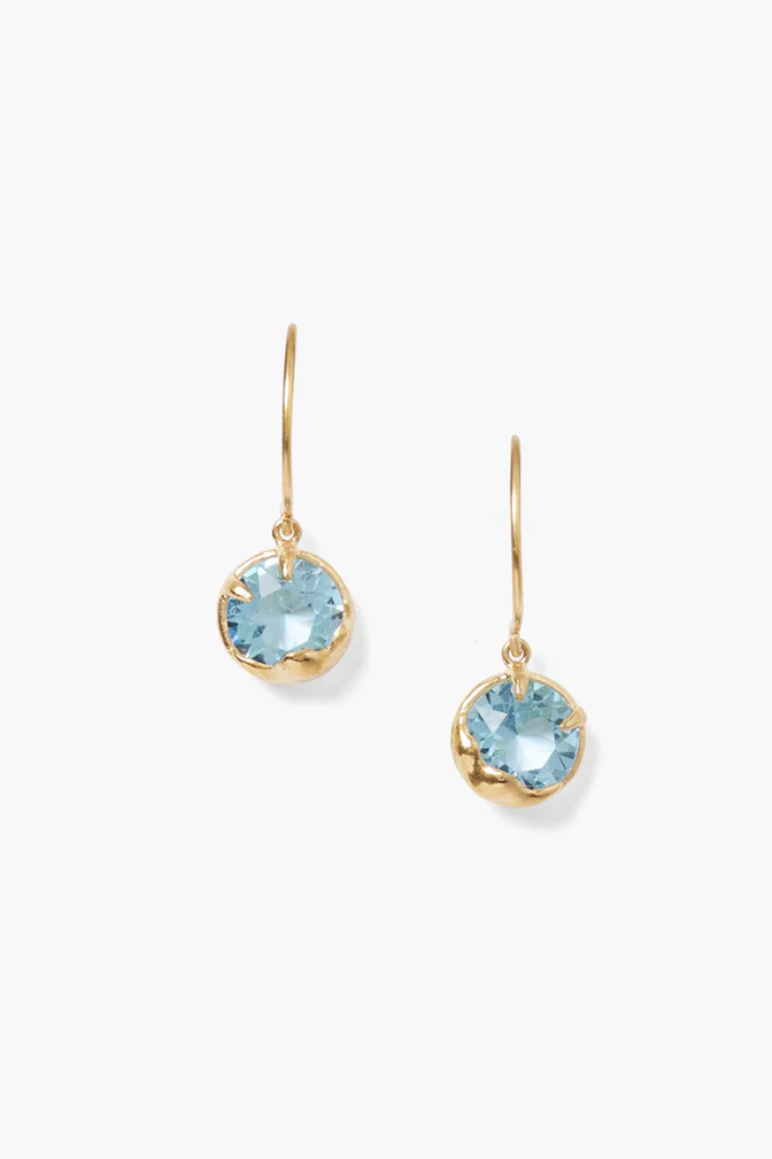 An elegant way to wear your birthstone. Faceted aquamarine crystals sparkle in these timeless gold hoop earrings.
