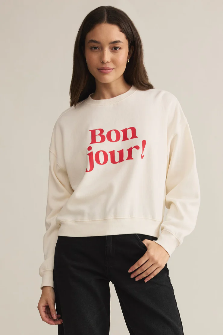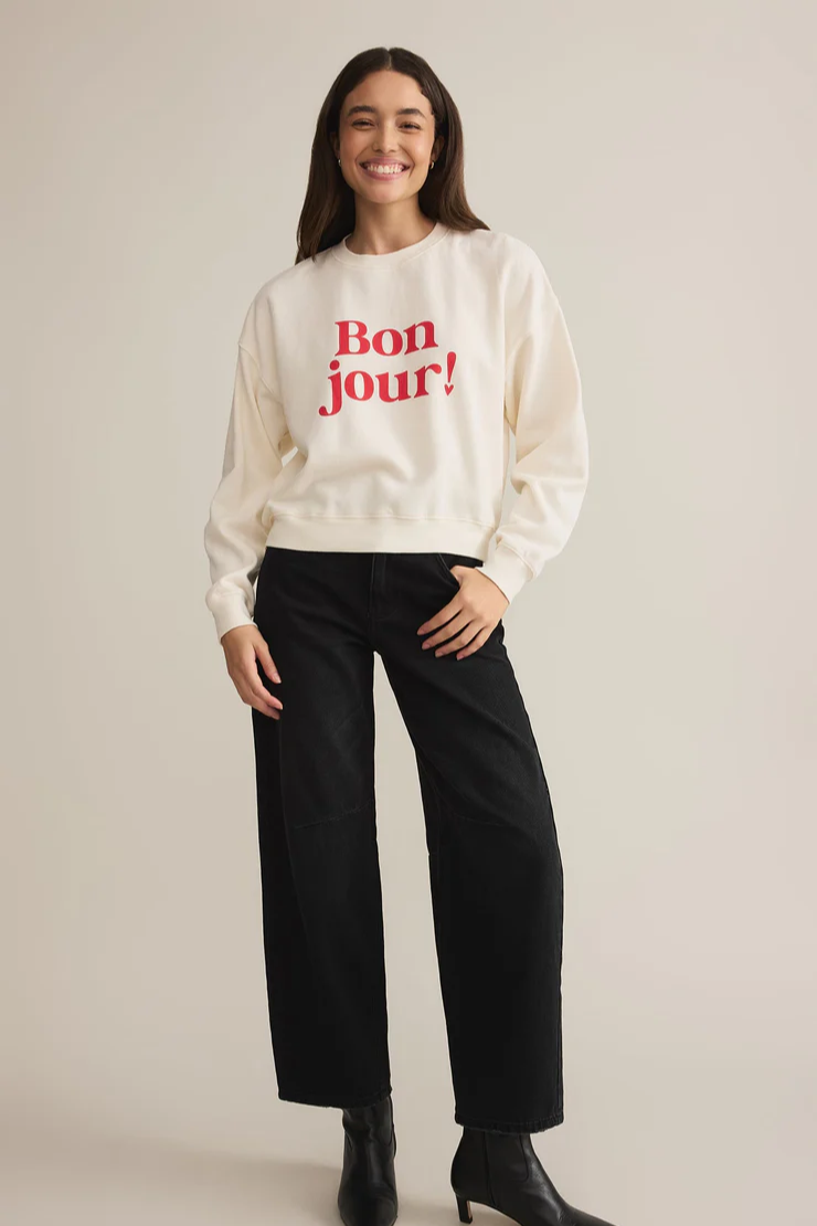Say hello to your new favorite sweatshirt, made from midweight cotton fleece and featuring a French-inspired phrase for a touch of effortless style. With its relaxed fit, it’s the perfect way to elevate your casual wardrobe.