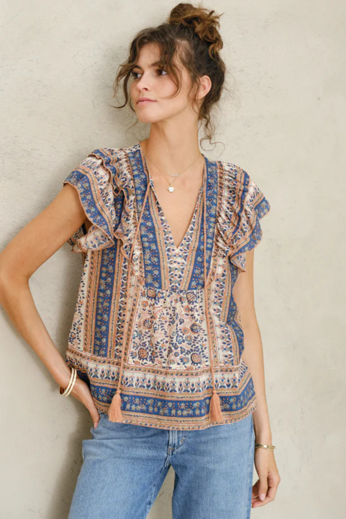 Made from soft, lightweight cotton featuring a vintage-vibe floral print, the Cass Frill sleeved top is the perfect holiday throw-on. A contrasting border decorates the neckline whilst ruffled sleeves add a little summer pizazz. As for our styling advice, just add jeans. Any fit, any colour, all day any day.