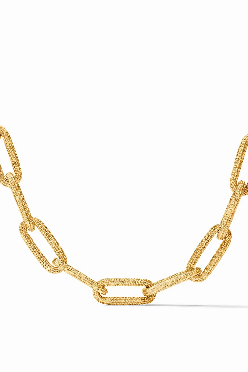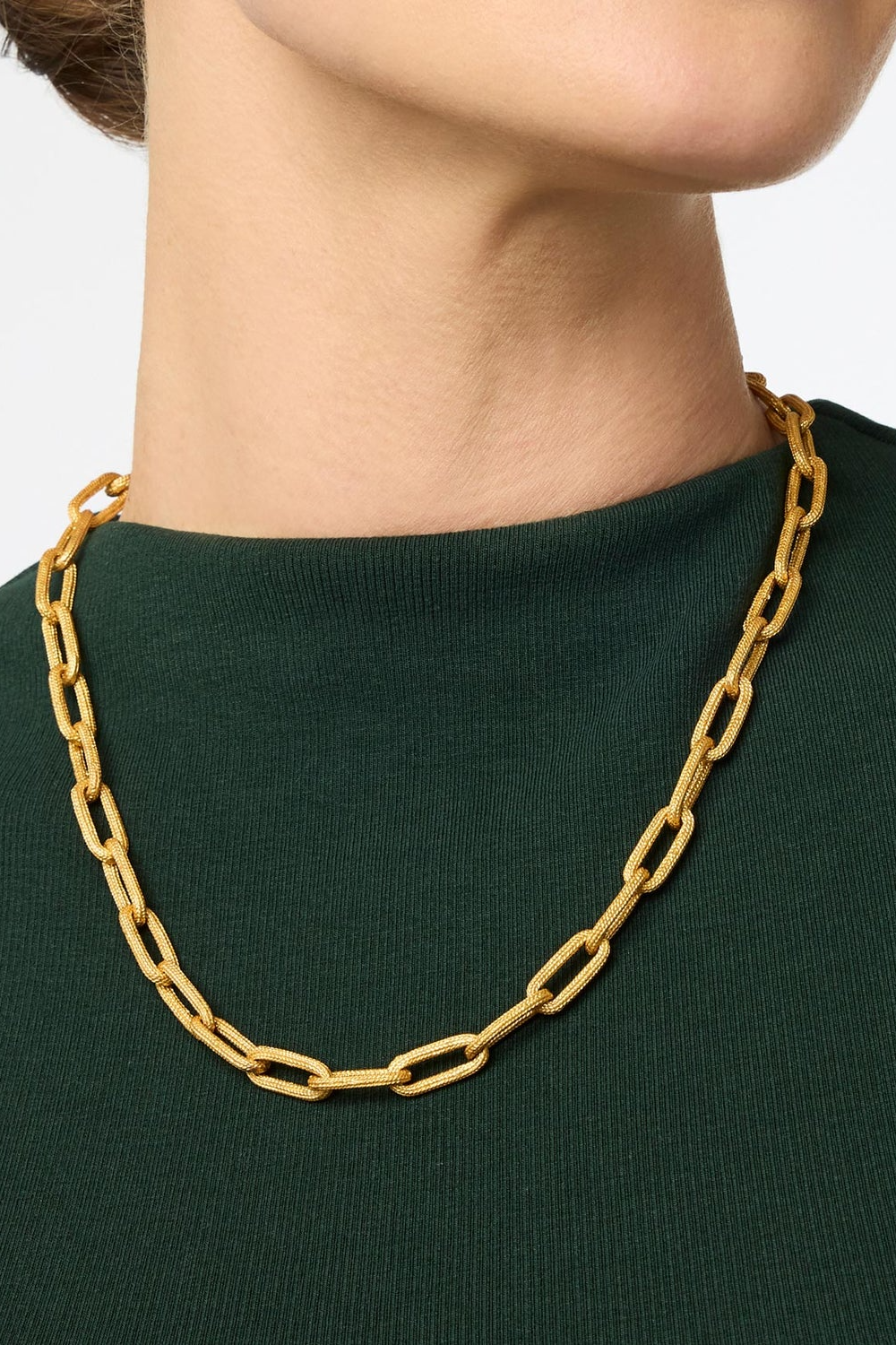 Elongated oval links textured with braided golden wire, closing with a matching toggle.