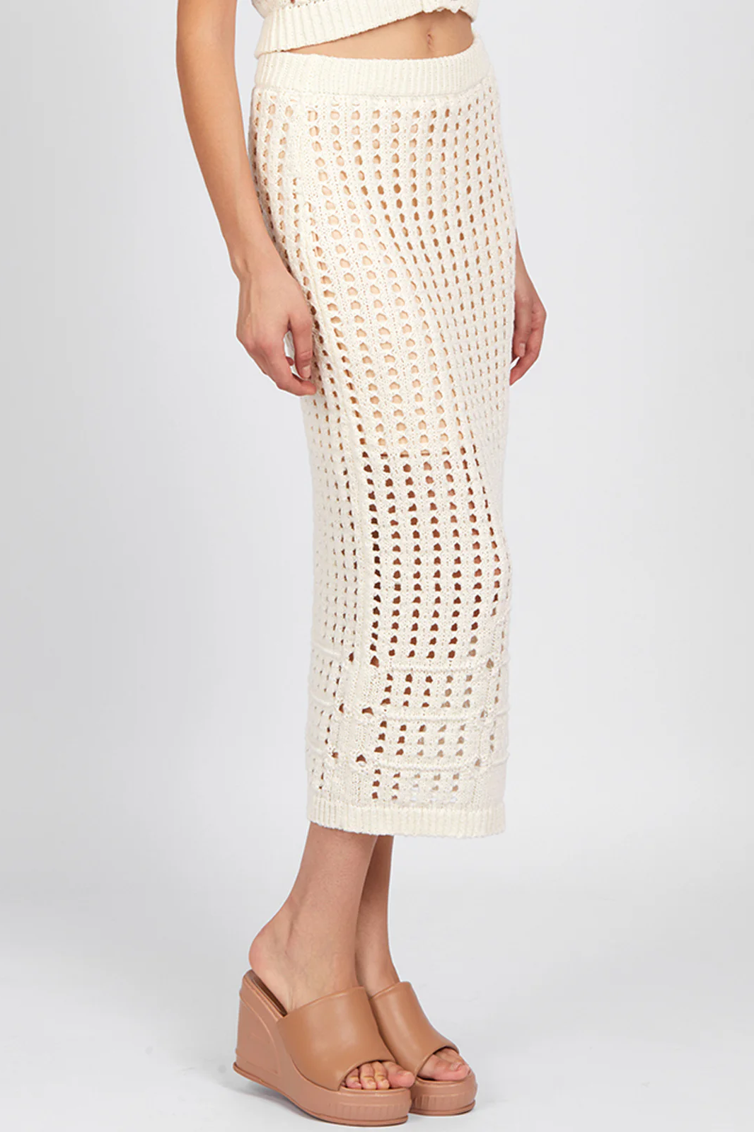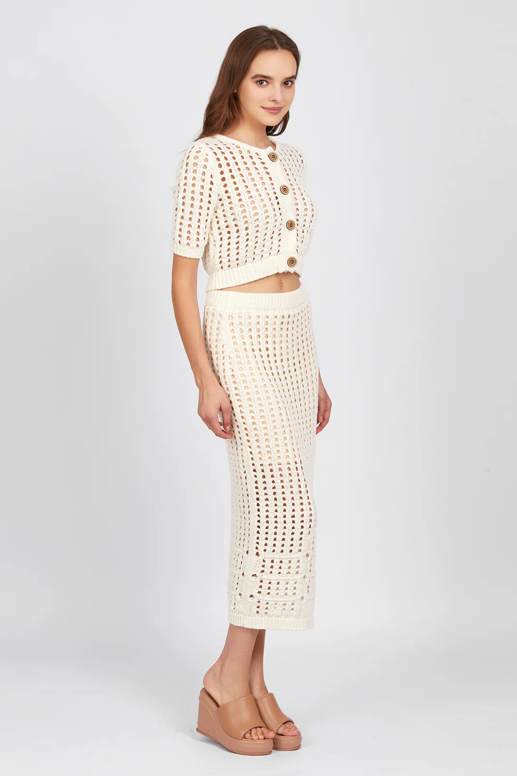 Radiate elegance in our Open Stitch Midi Skirt. Versatile and sophisticated, it pairs perfectly with a blouse or tank top. Whether you're attending a garden party or exploring the city, this skirt ensures you stand out with timeless style.