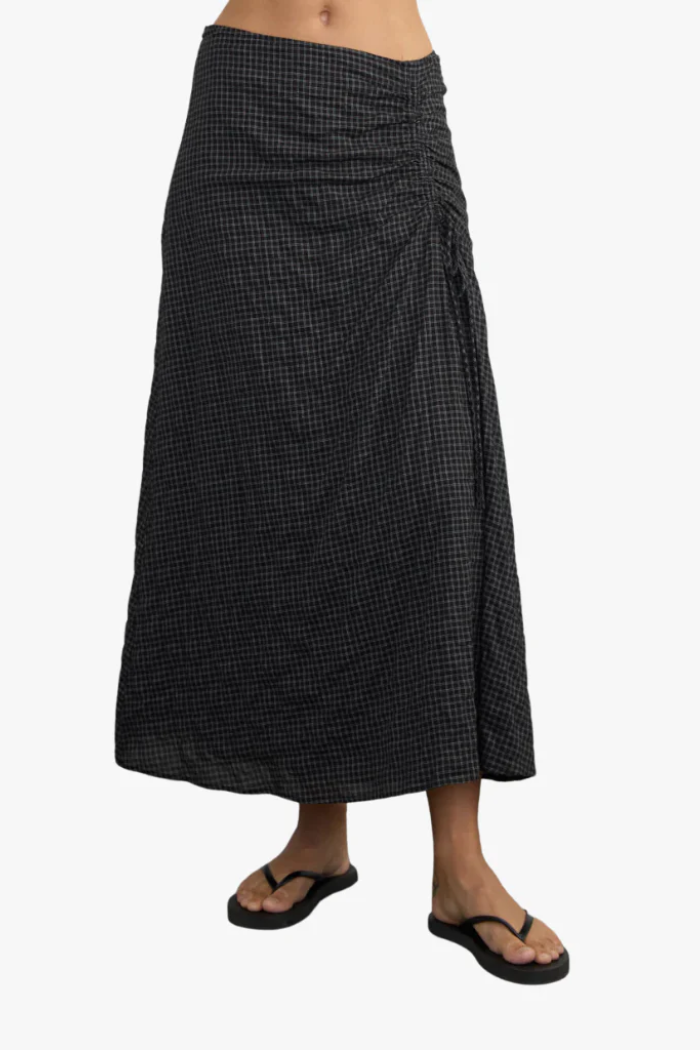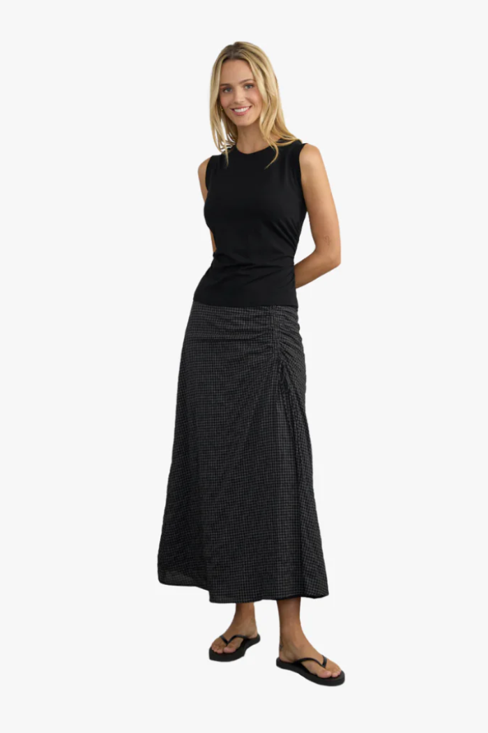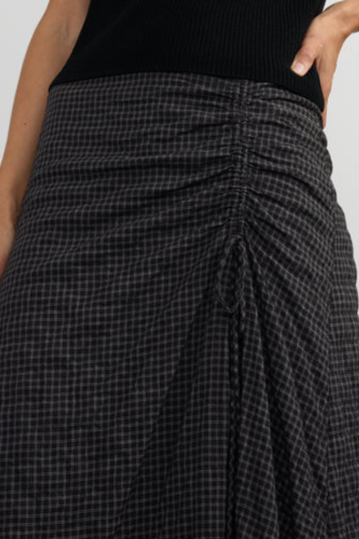 If you want an easy go-to skirt that works for any occasion, Clementine has you covered. Made from lightweight 99% organic cotton with a windowpane pattern and a seersucker texture. An asymmetric drawcord detail allows for a little more draping and flatters any figure. With a full lining for a smooth fit and a hidden side zipper for a clean look, Clementine is ready for wherever the day takes you.