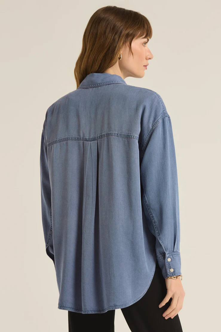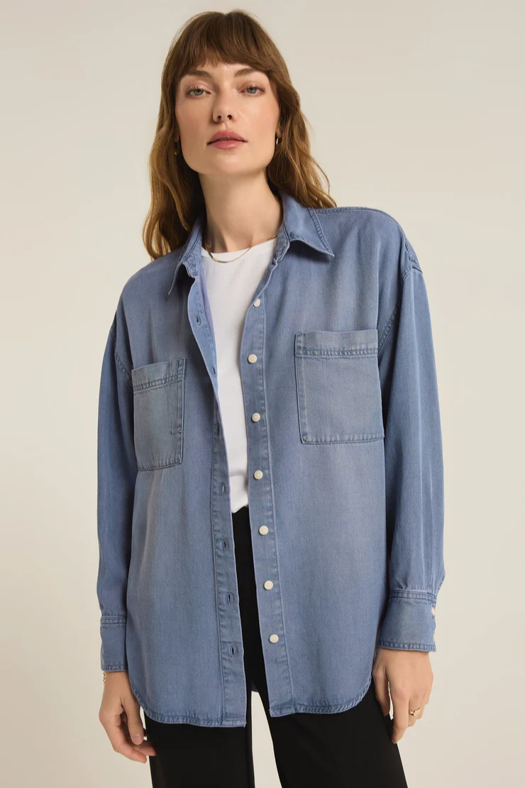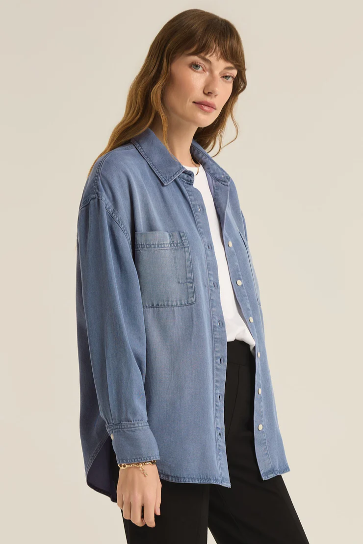 Everyone is loving our soft and stylish chambray fabric and it gives this long sleeve button up an ultra comfortable feel. Worn alone or as a layering piece, you'll easily be able to mix this into your everyday rotation.