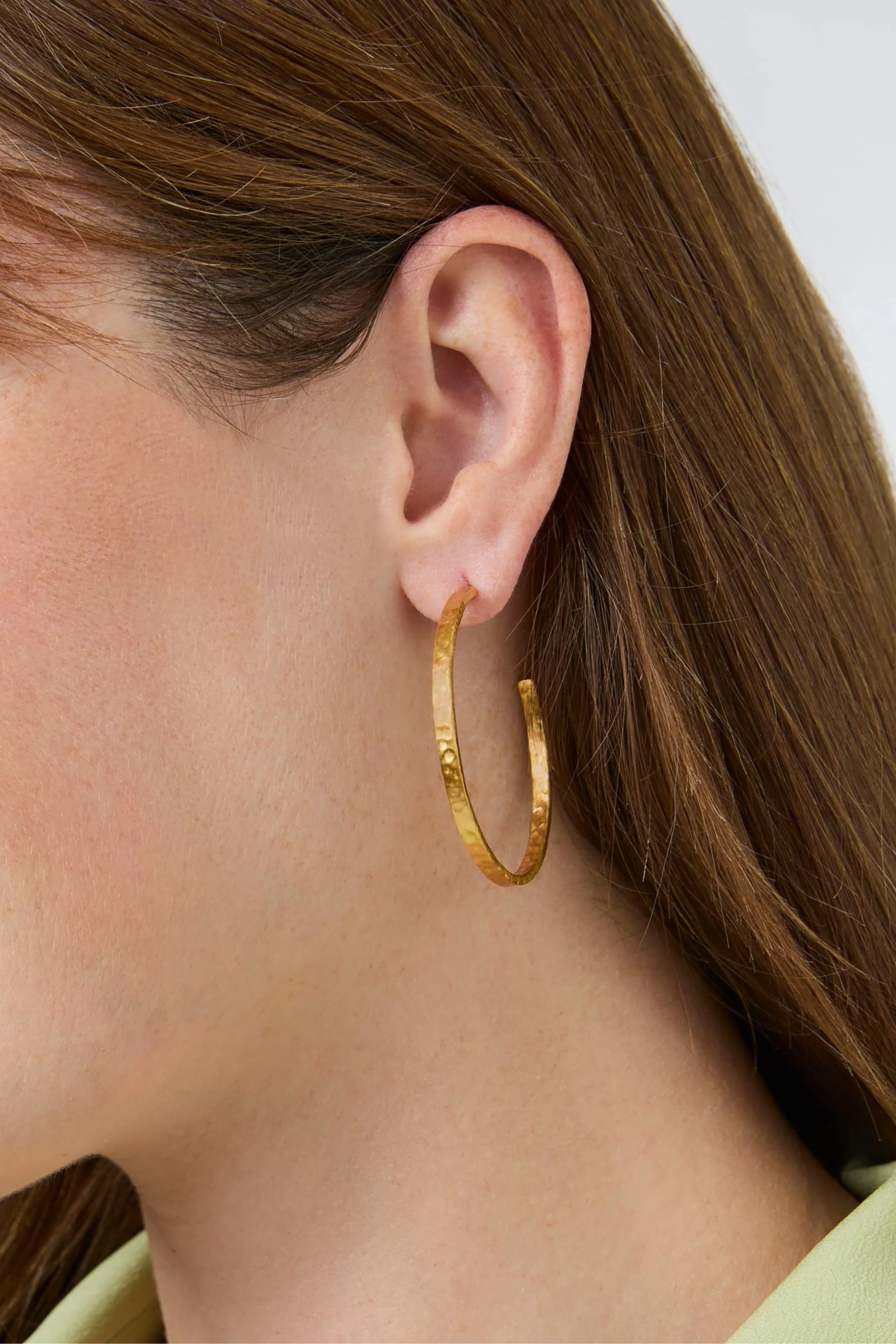 Lightly hammered hoop with a handmade feel.