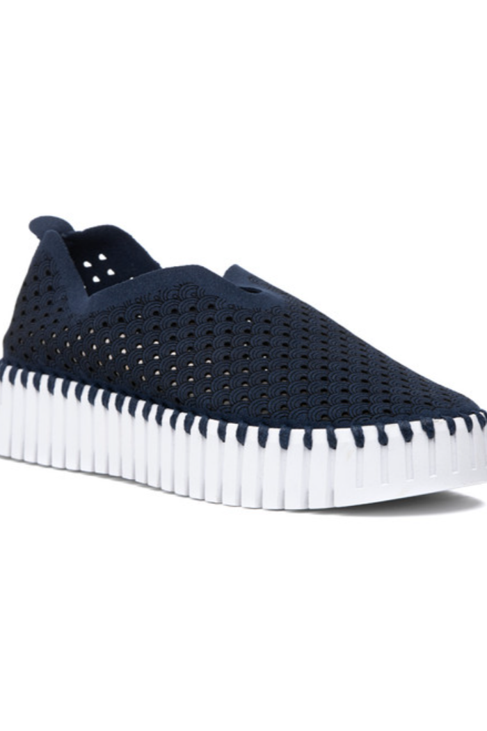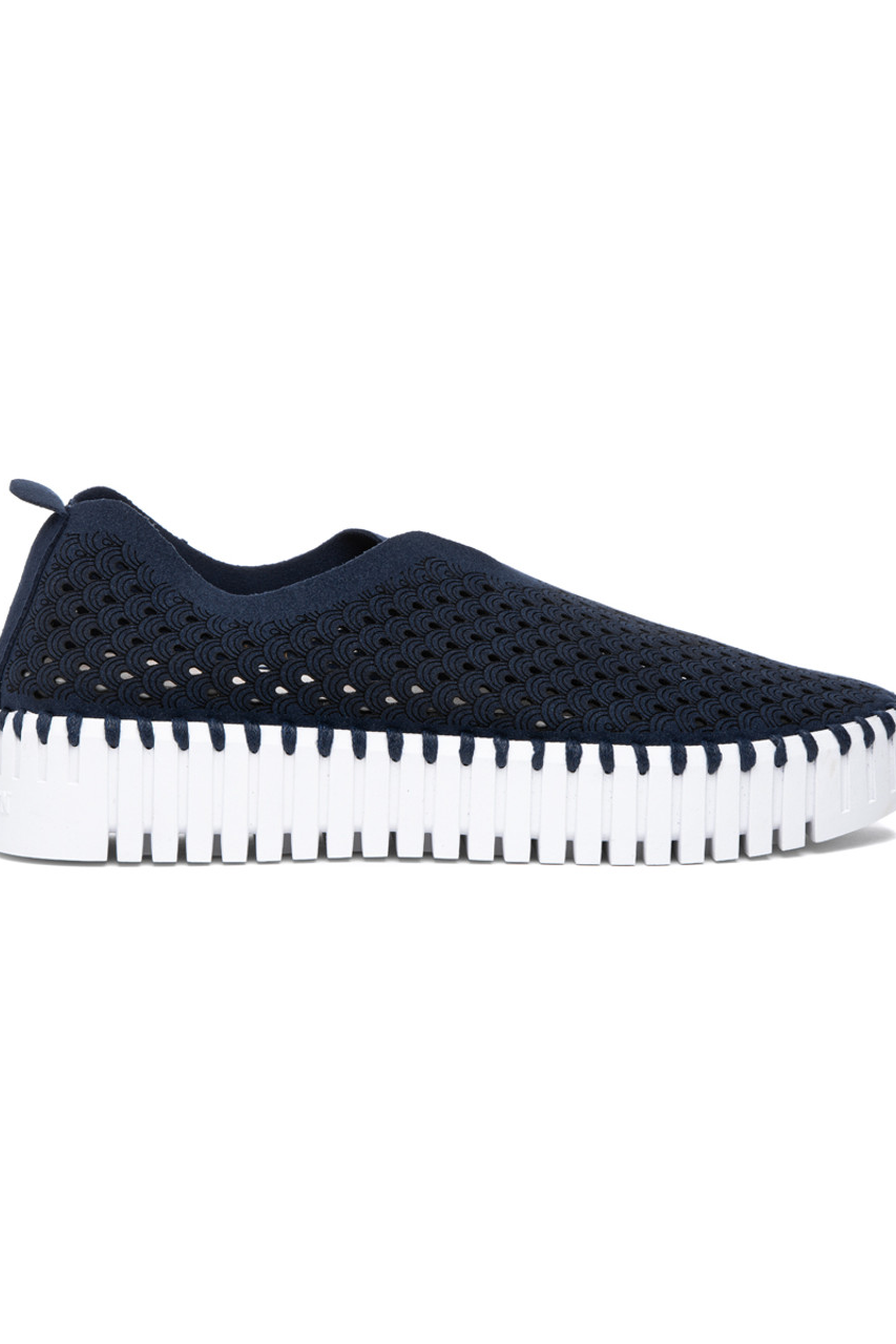 Ilse Jacobsen Tulip 139 is a lightweight and comfortable slip-on shoe. Prominent features include perforated recycled microfiber uppers, a removable insole and a sturdy and chunky outsole.
