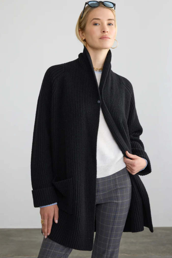 As grand and beautiful as its namesake city, the Florence Coat is a showstopper of a knitted coat. The generous shawl collar and cuffs provide superior warmth. Front patch pockets to carry your phone on early morning walks. For this special piece, we sourced the highest quality extra-fine merino wool blend yarns from the storied Zegna Baruffa wool mill. Since its inception in the 19th century, the mill rests in the foothills of the Alps in a town called Borgosesia, Italy. For nearly 150 years, the factory has honored its commitment to respecting people, the planet, and products.