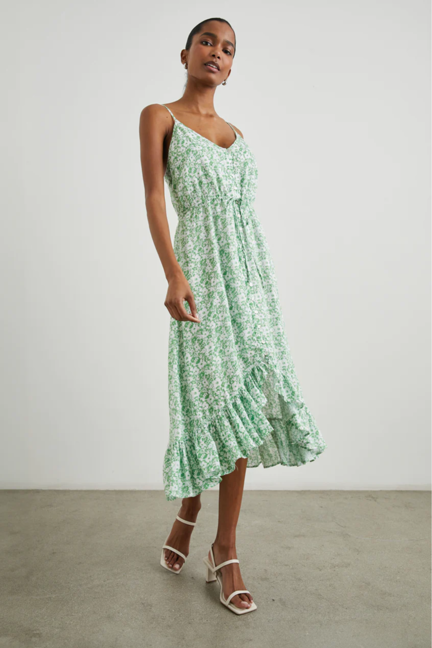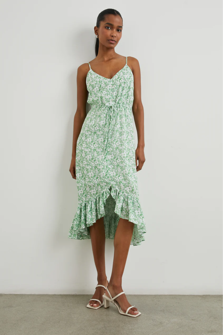 The Rails Frida Dress—with a midi length and rayon-crepe texture—works for your every day, but in an elevated way. It's comfortably lined with thin, adjustable shoulder straps and fabric-covered buttons. What catches the eye is the vibrant floral print, swingy silhouette, and flattering high-low hem.