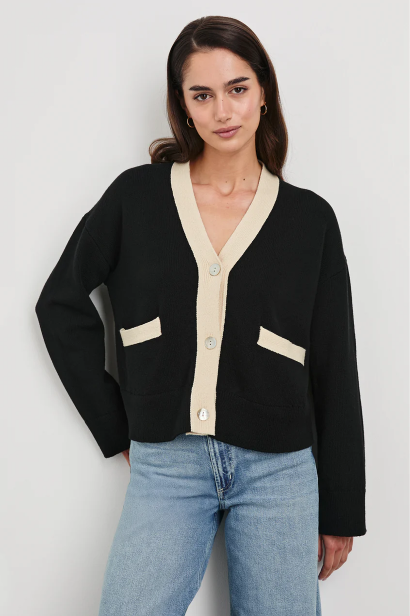 A classic academia-style cardigan, the Geneva by Rails is crafted from a 100% cotton yarn with contrasting trimmings for a distinctive touch. With a mid-weight fabrication and relaxed fit, this sweater is a classic and layerable.