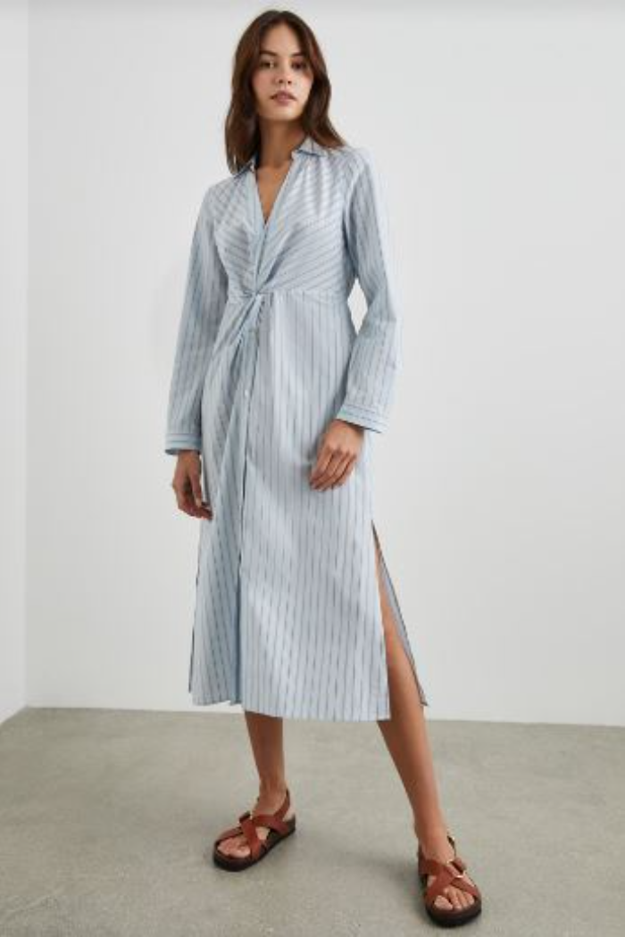 Rails designed this dress intentionally, down to every detail. Featuring a deep v-neckline, open collar, and focal-point detailing at the waist, this style fits and flatters just right. Made from stretch poplin, it'll keep you comfortable while maintaining its shape.