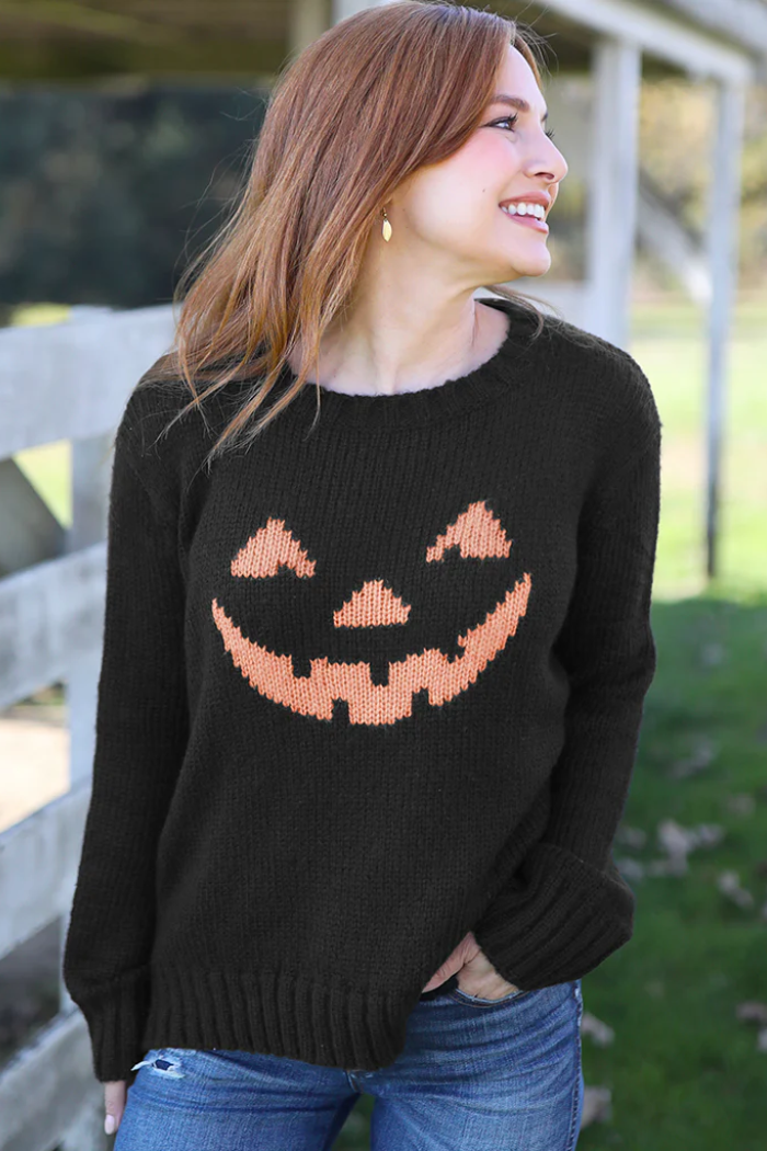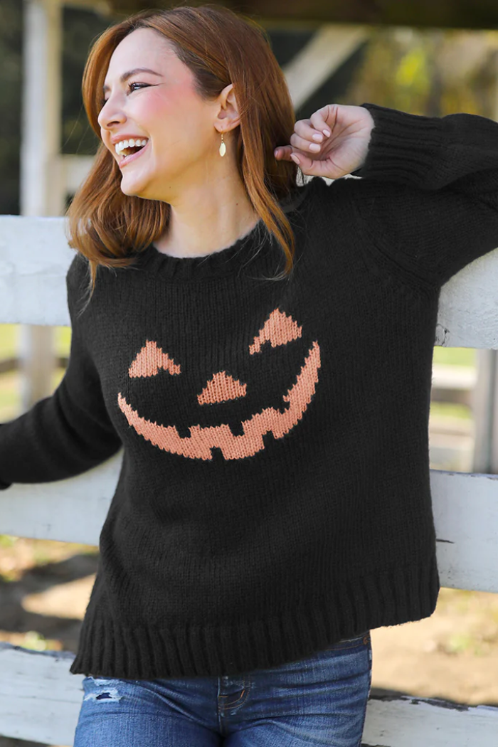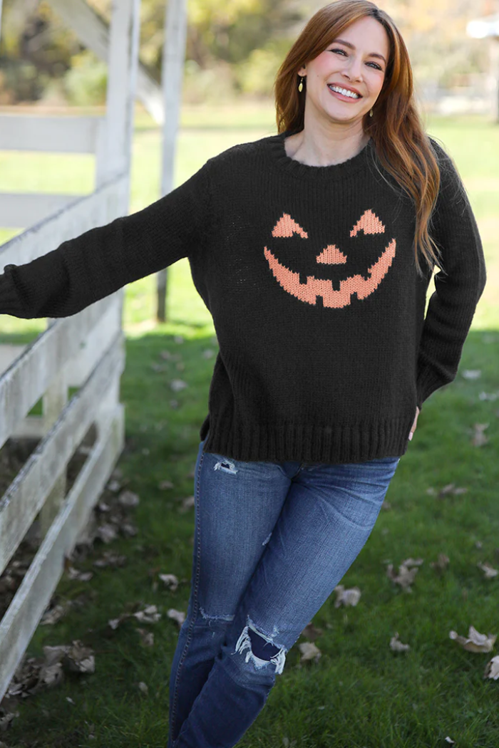 The missing piece in your autumn wardrobe for all Fall lovers. This must-have boyfriend crew by Wooden Ships is super soft and knit in a flattering relaxed fit that will keep you cozy throughout the entire season. The Jack-O-Lantern graphic is knit directly into the sweater. Details include ribbed finishes and small side slits at the hem.