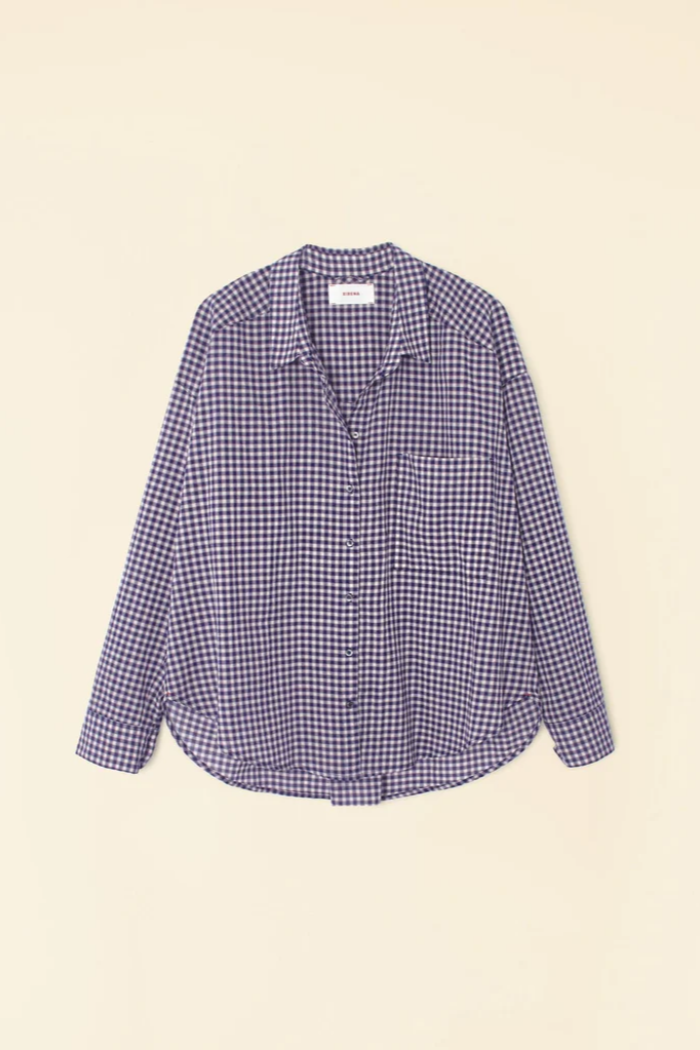 Checkmate. Jordy is updated this season in our check cotton blend plaid. Jordy is an easy button-front shirt with a boxy fit, left chest pocket, and high low shirttail hem.