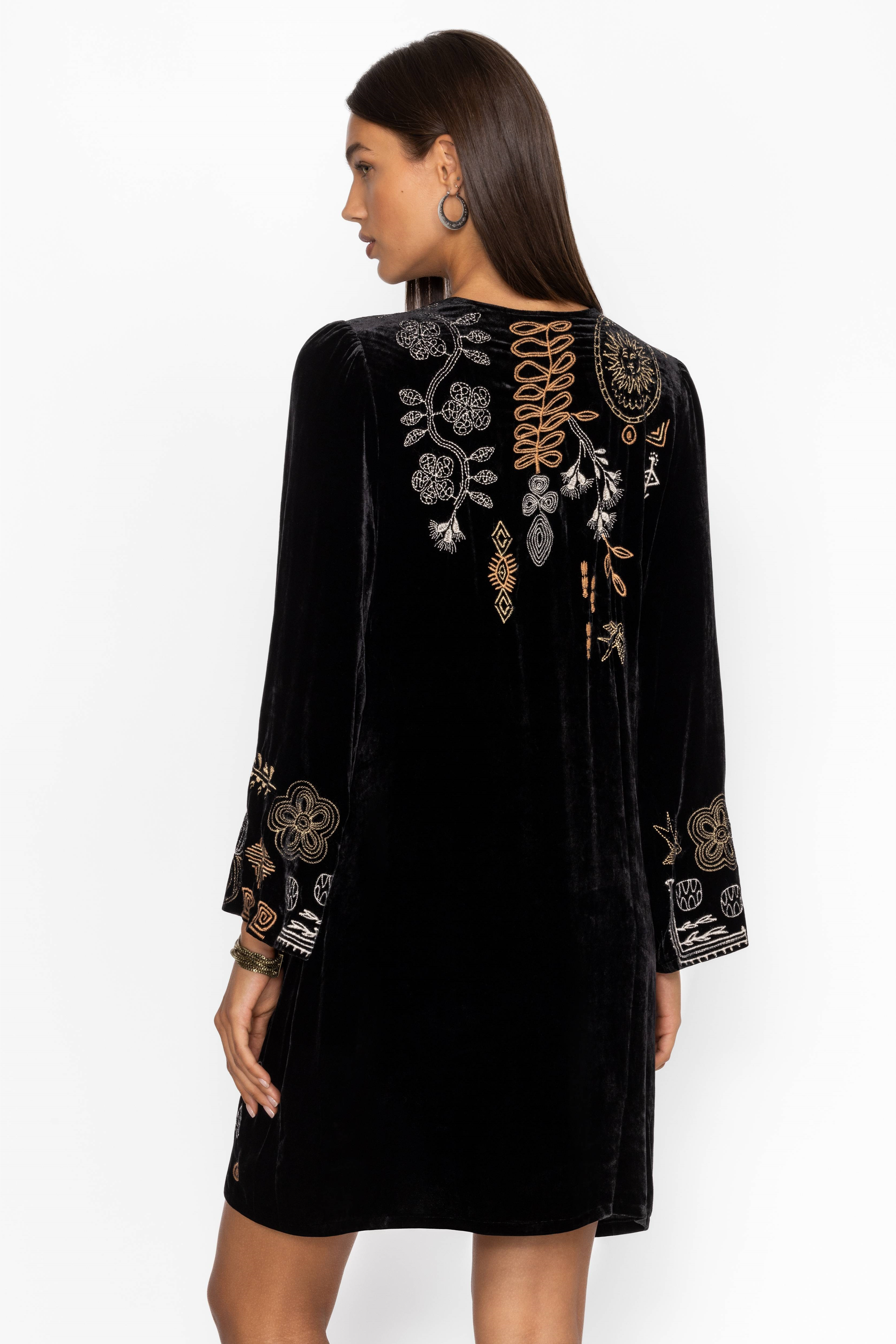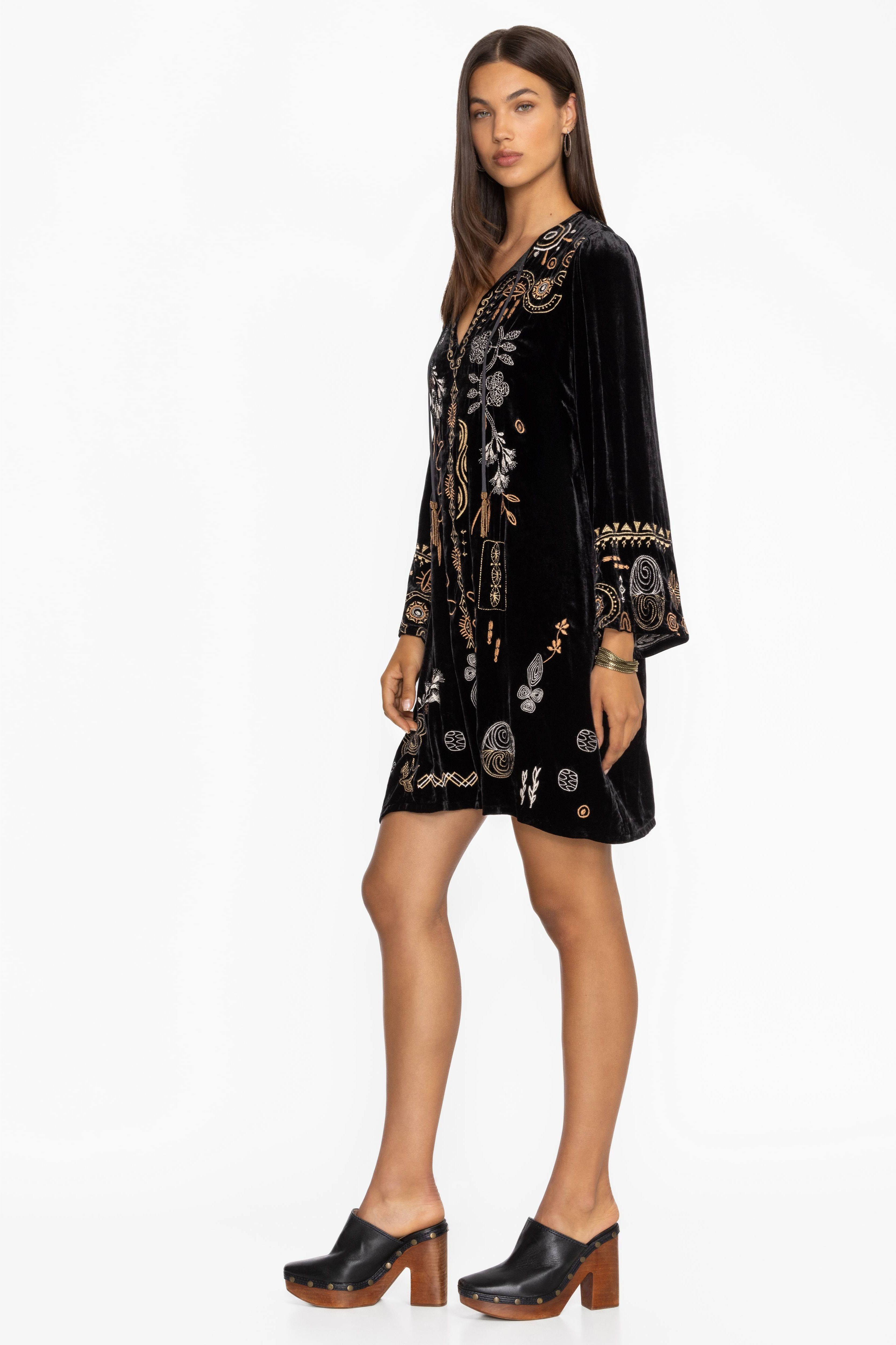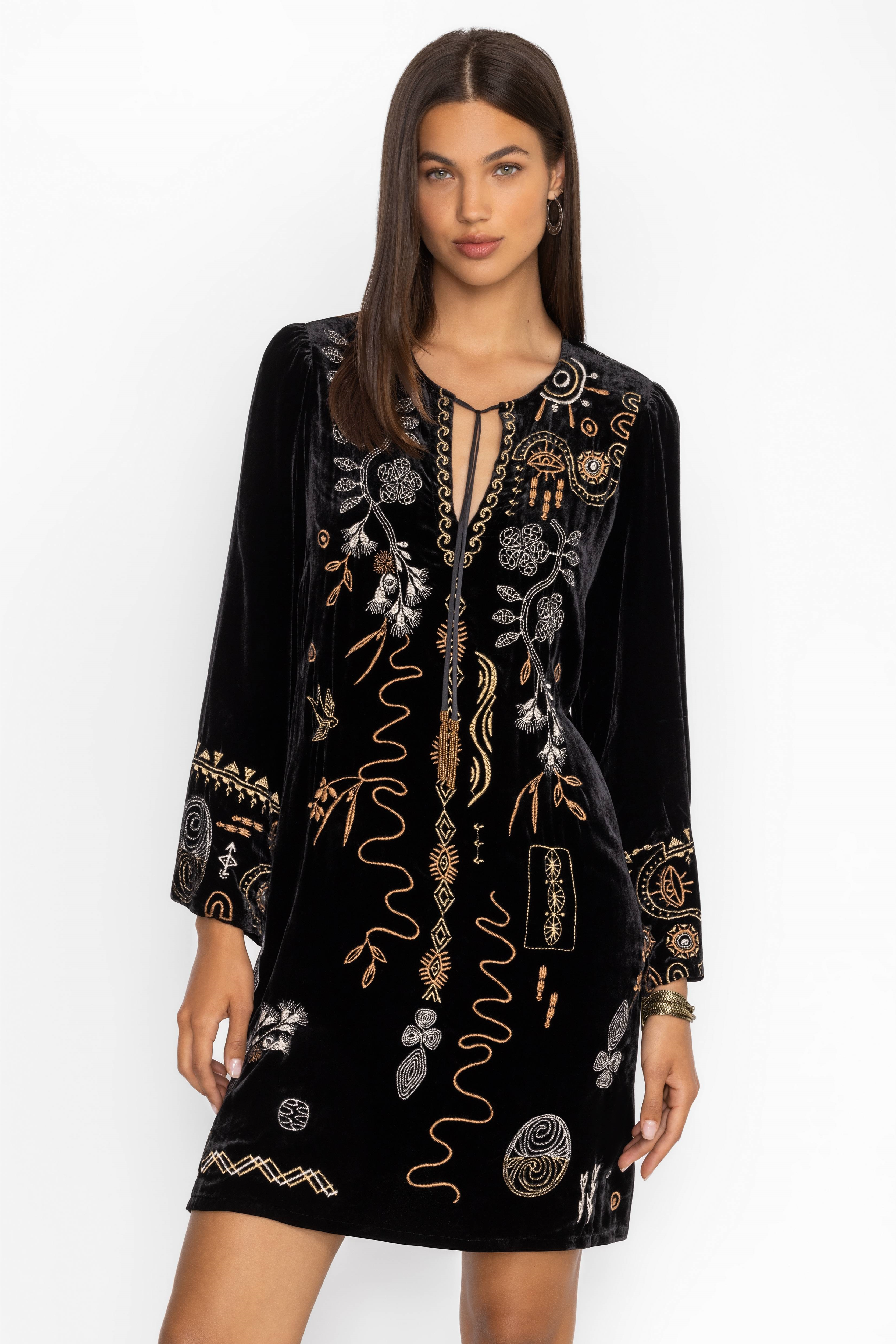 Crafted from a flowing silk blend, the Jenai Kimono Sleeve Relaxed Dress by Johnny Was is embellished with intricate placement embroidery. Featuring a split V-neckline with decorative tassels, this dress is finished with kimono sleeves and a relaxed bodice.