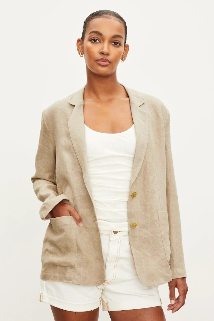 Crafted from a medium-weight linen that has the perfect amount of structure, this essential blazer features all the traditional style elements in a laid-back, yet tailored, silhouette.