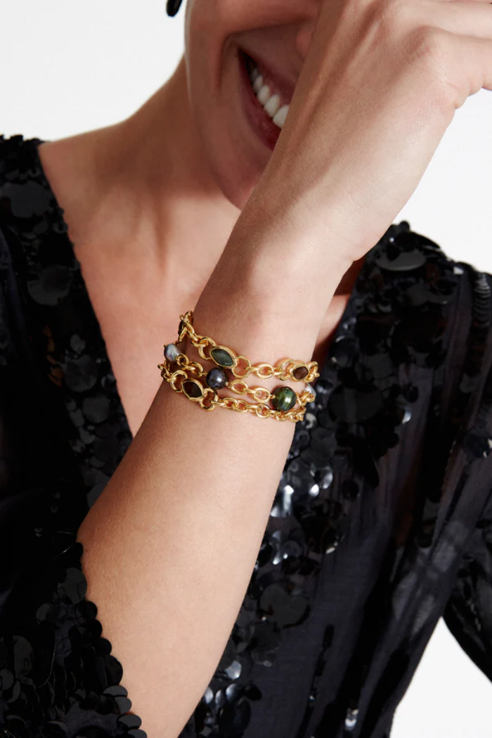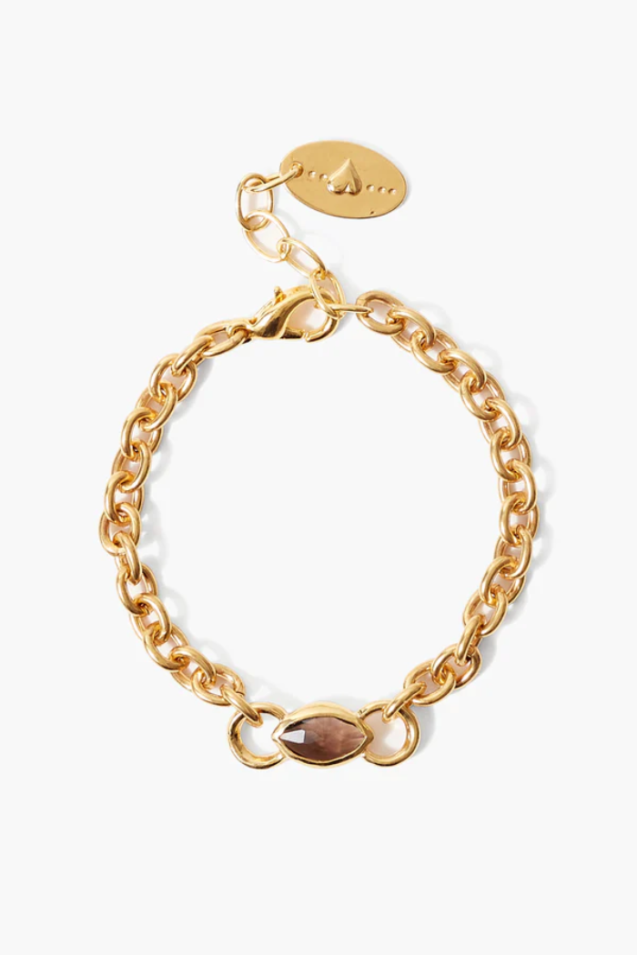 Chain link bracelet with hand-cut marquise smoky quartz stone.