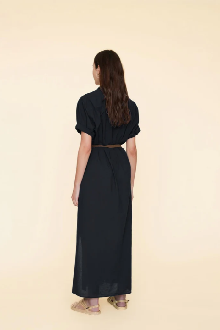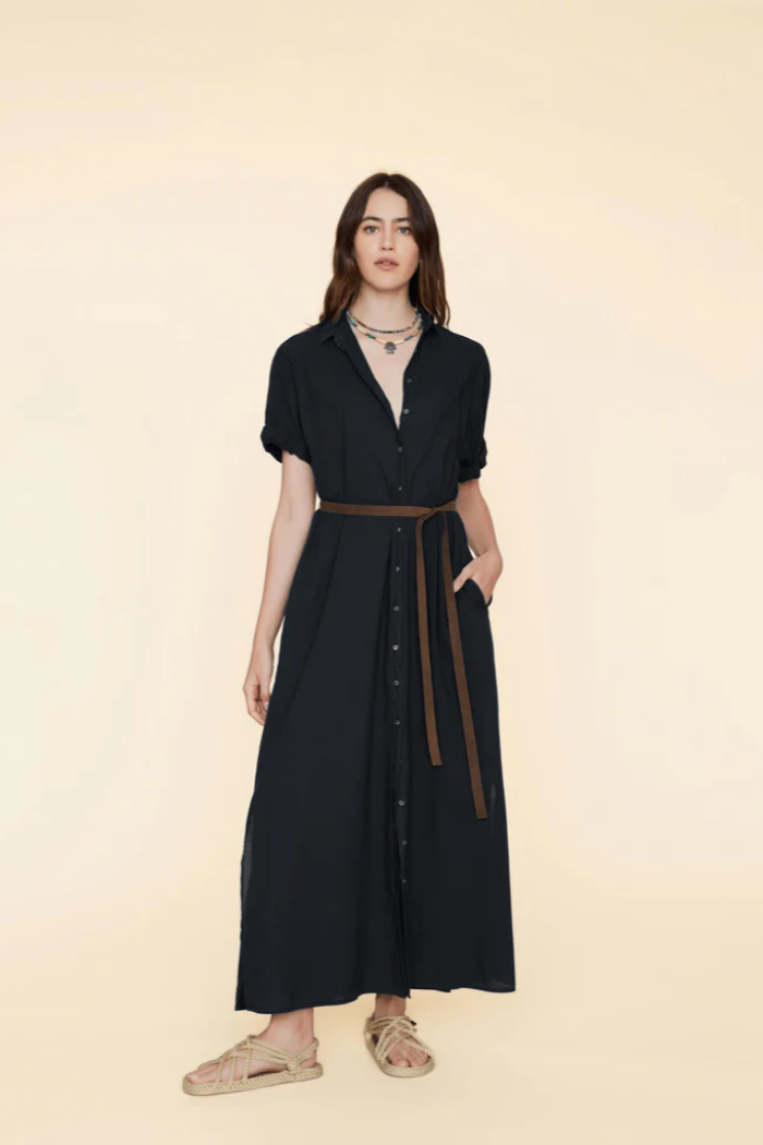 Forever Timeless. Linnet is made in classic lightweight woven cotton poplin for a lived-in look and feel. Inspired by Xirena's bestselling Channing Shirt, Linnet is a tailored shirtdress with a button-front, stitched rolled sleeves, faux suede waist-tie, side seam pockets, and hem side slits.