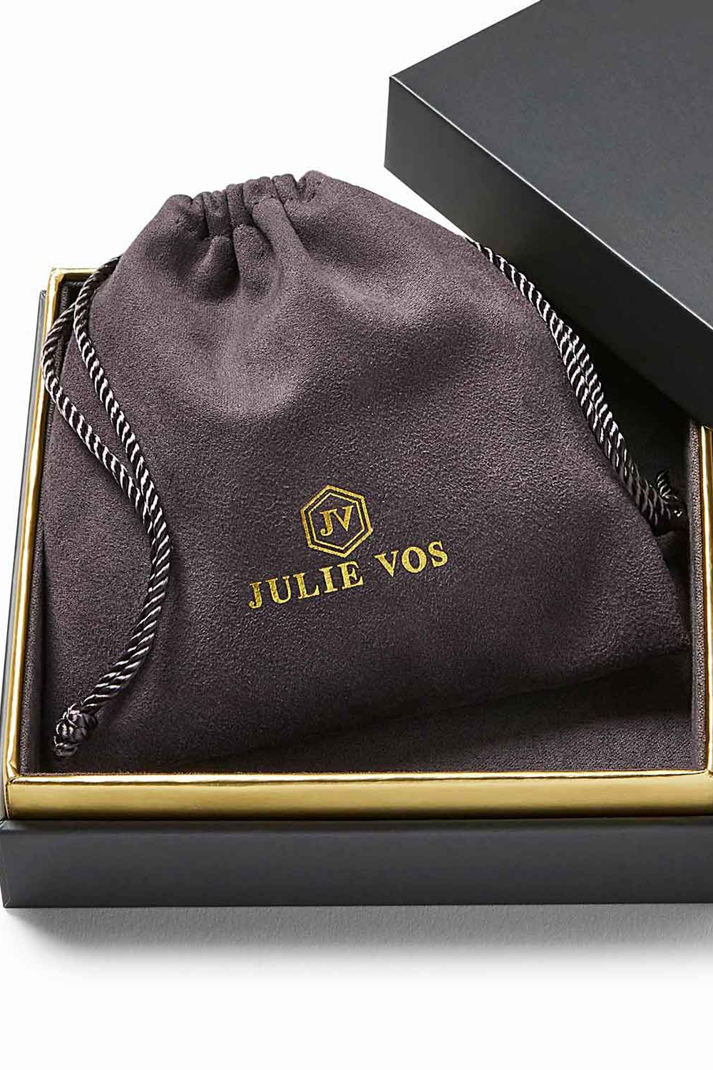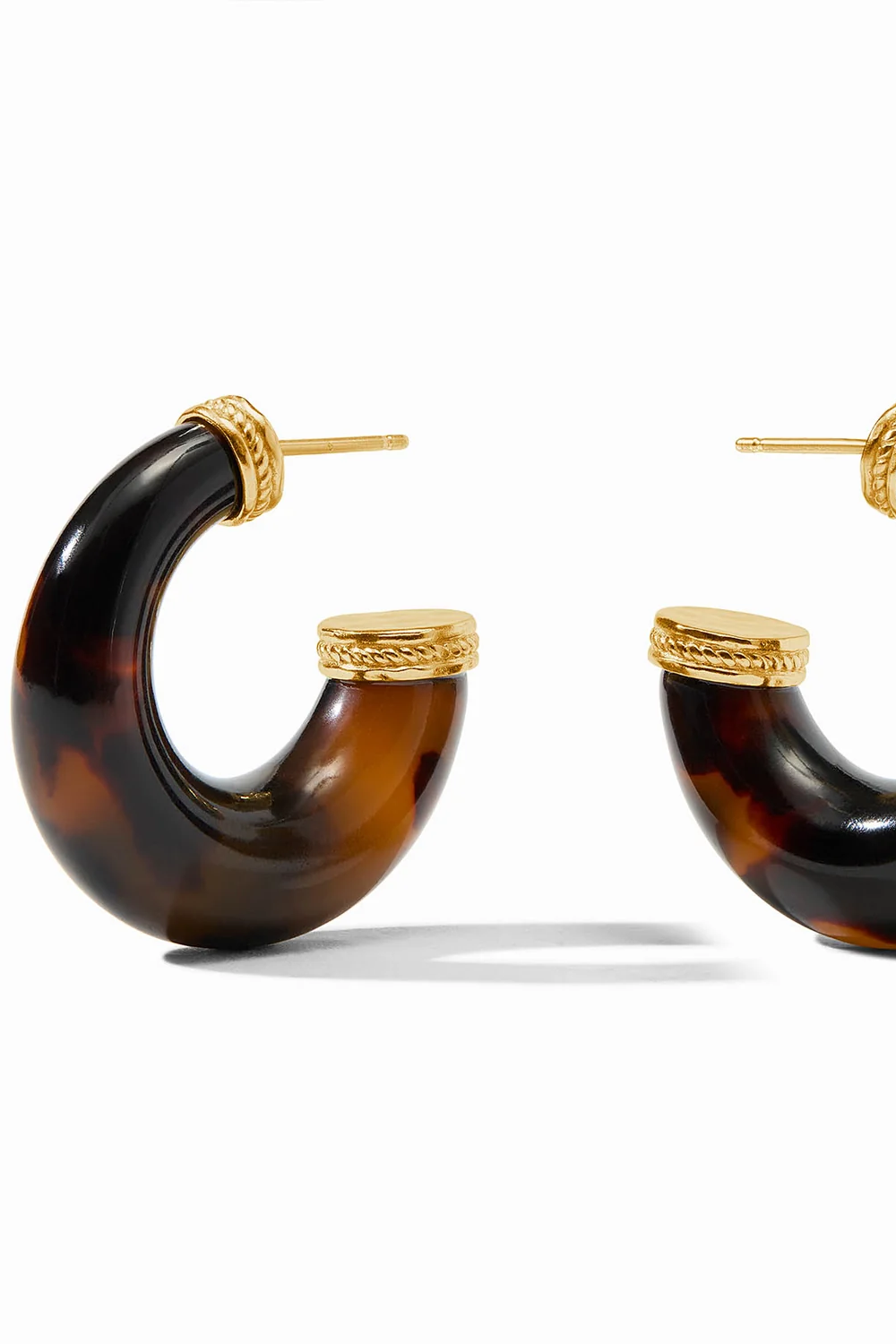 Finely polished transparent hoops, each end capped with lightly hammered golden bands.