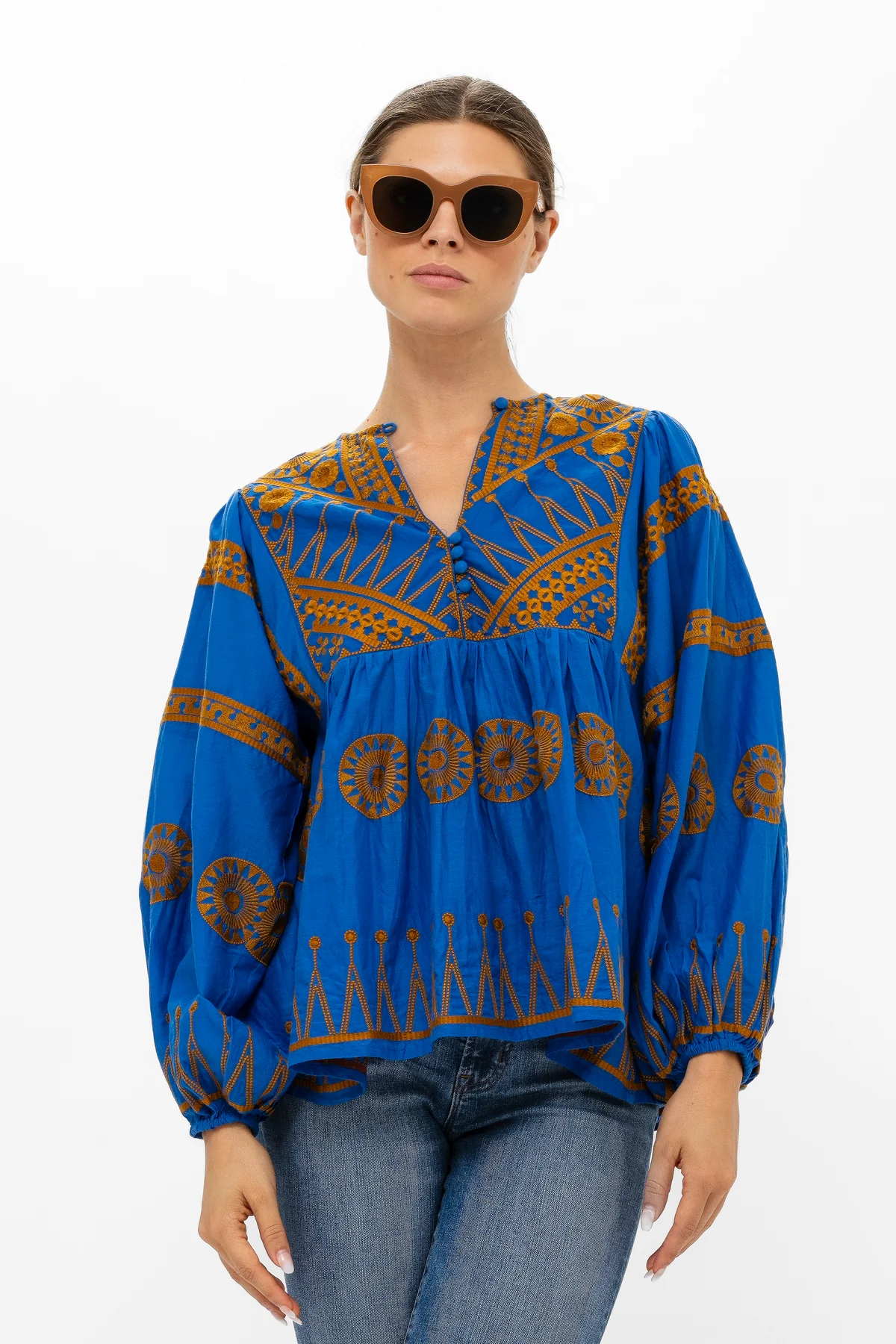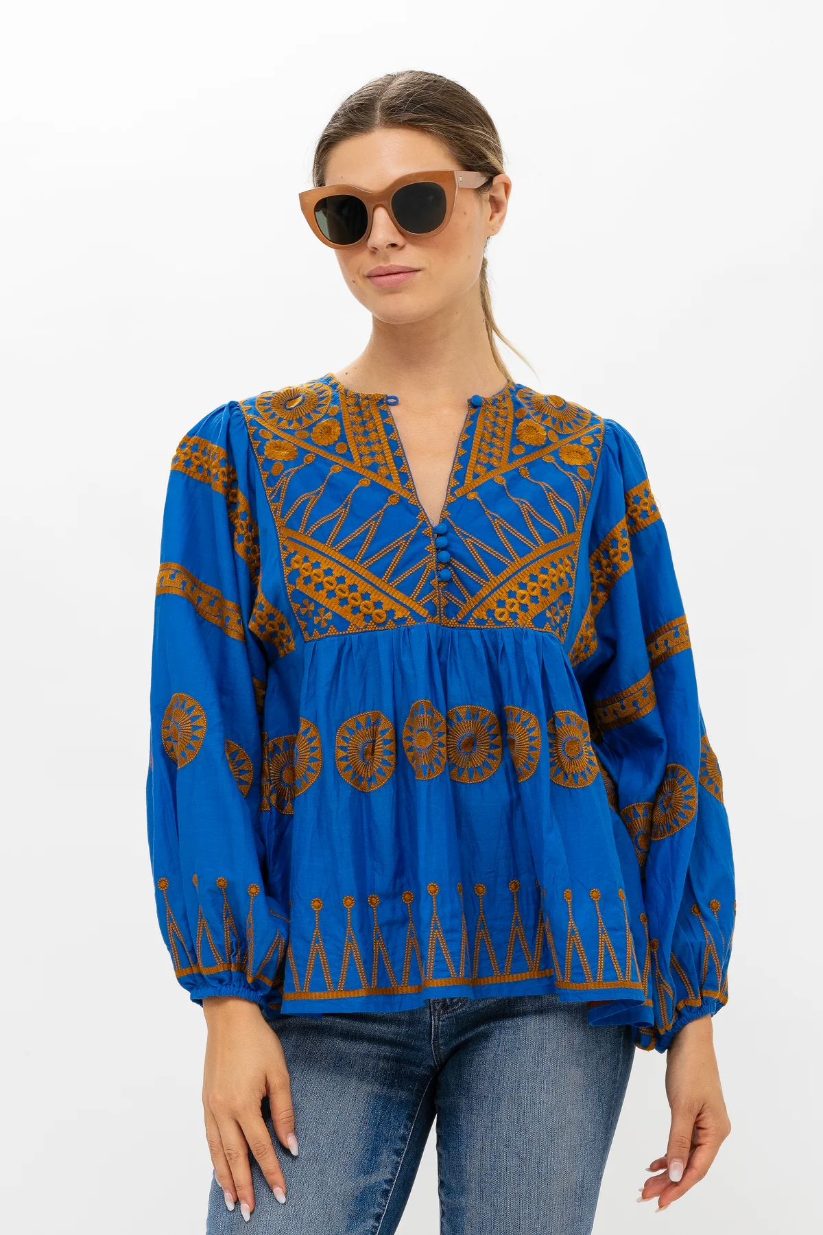 Oliphant's classic Mandarin Balloon Top gets an update with beautiful hand-embroidery