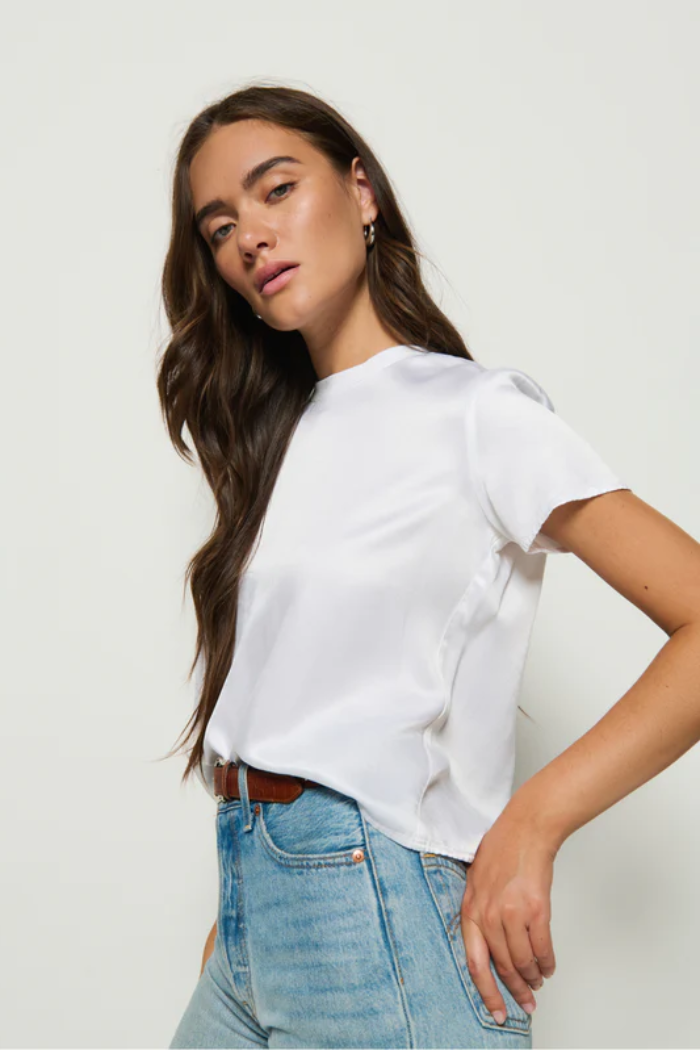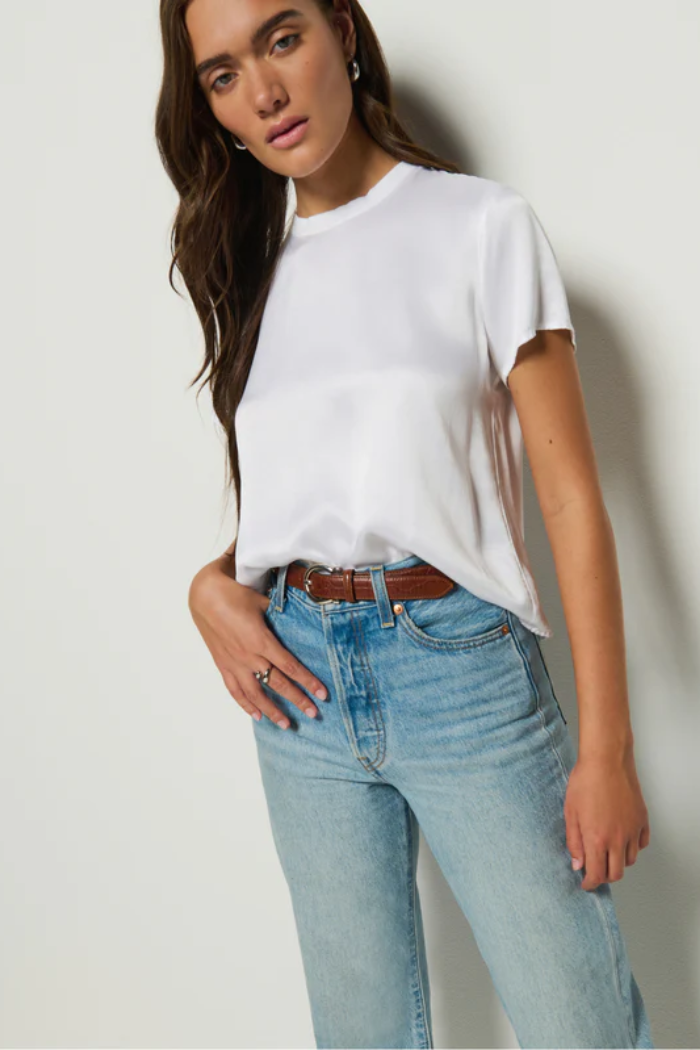 The dressed up version of your favorite laid-back, slightly cropped tee with a contrasting rib neckband.