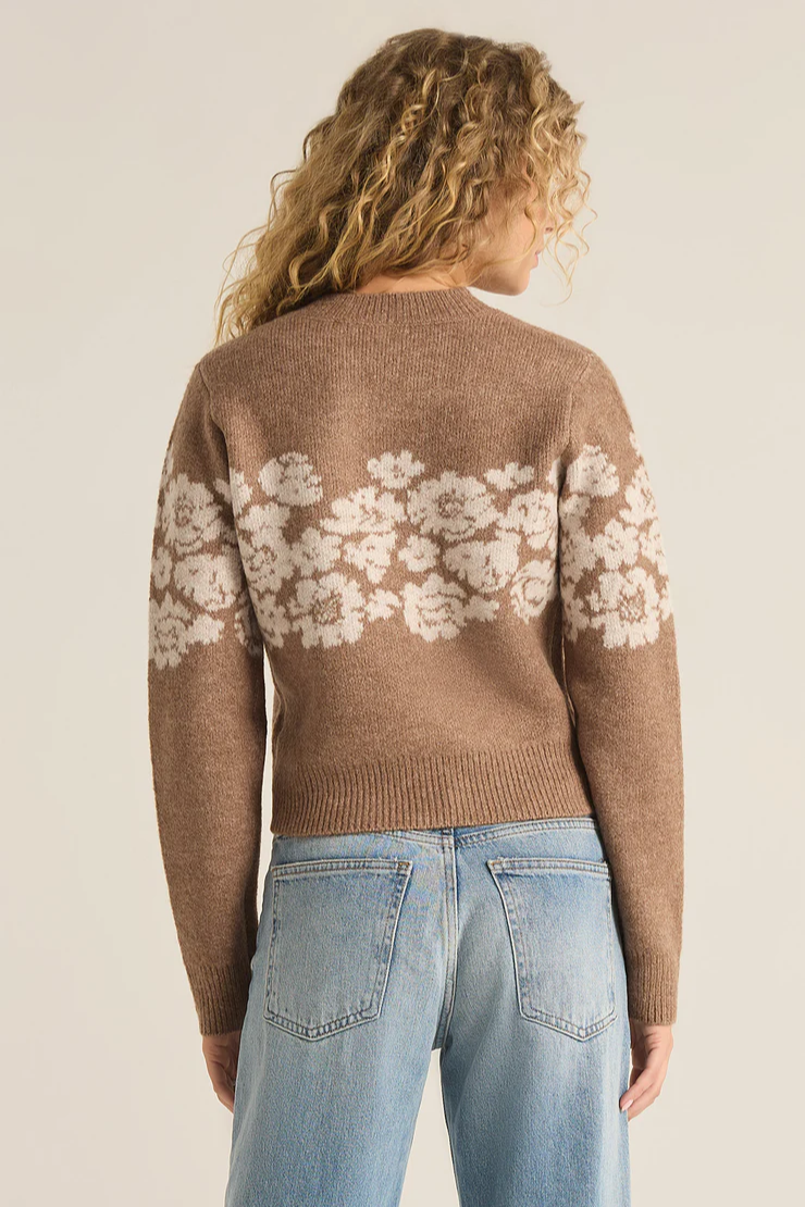 This elevated crew neck pullover sweater by Z Supply, crafted from midweight sweater yarns, features a feminine floral intarsia pattern. With full-length sleeves, it's perfect for adding a touch of chic style to your everyday look.